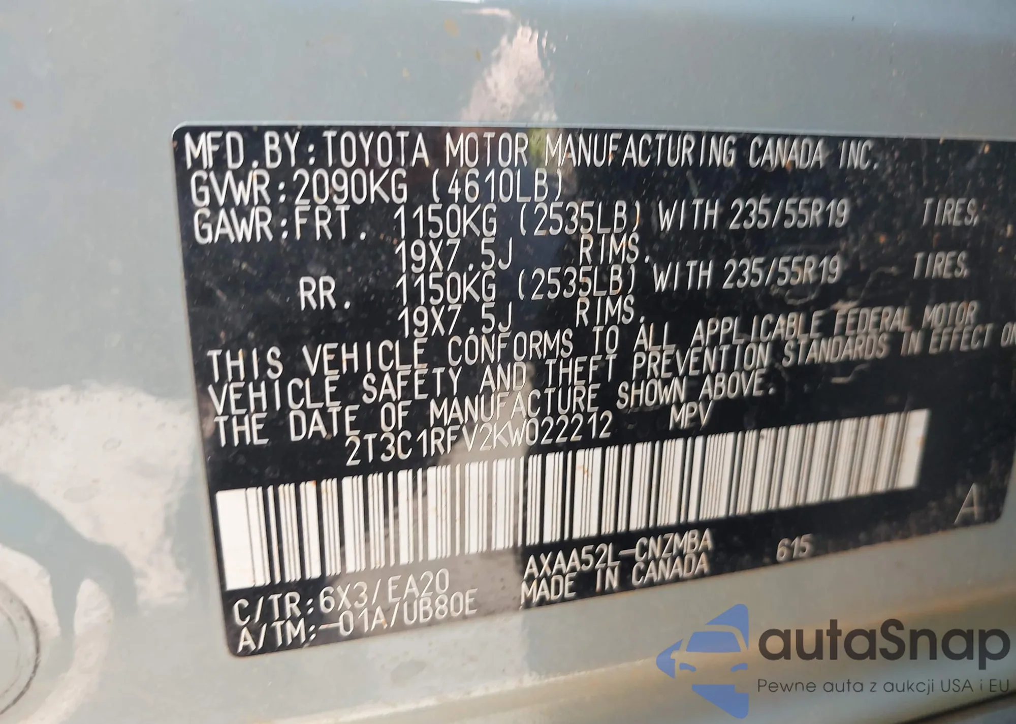 • VIN 4T1BF3EK8BU217967