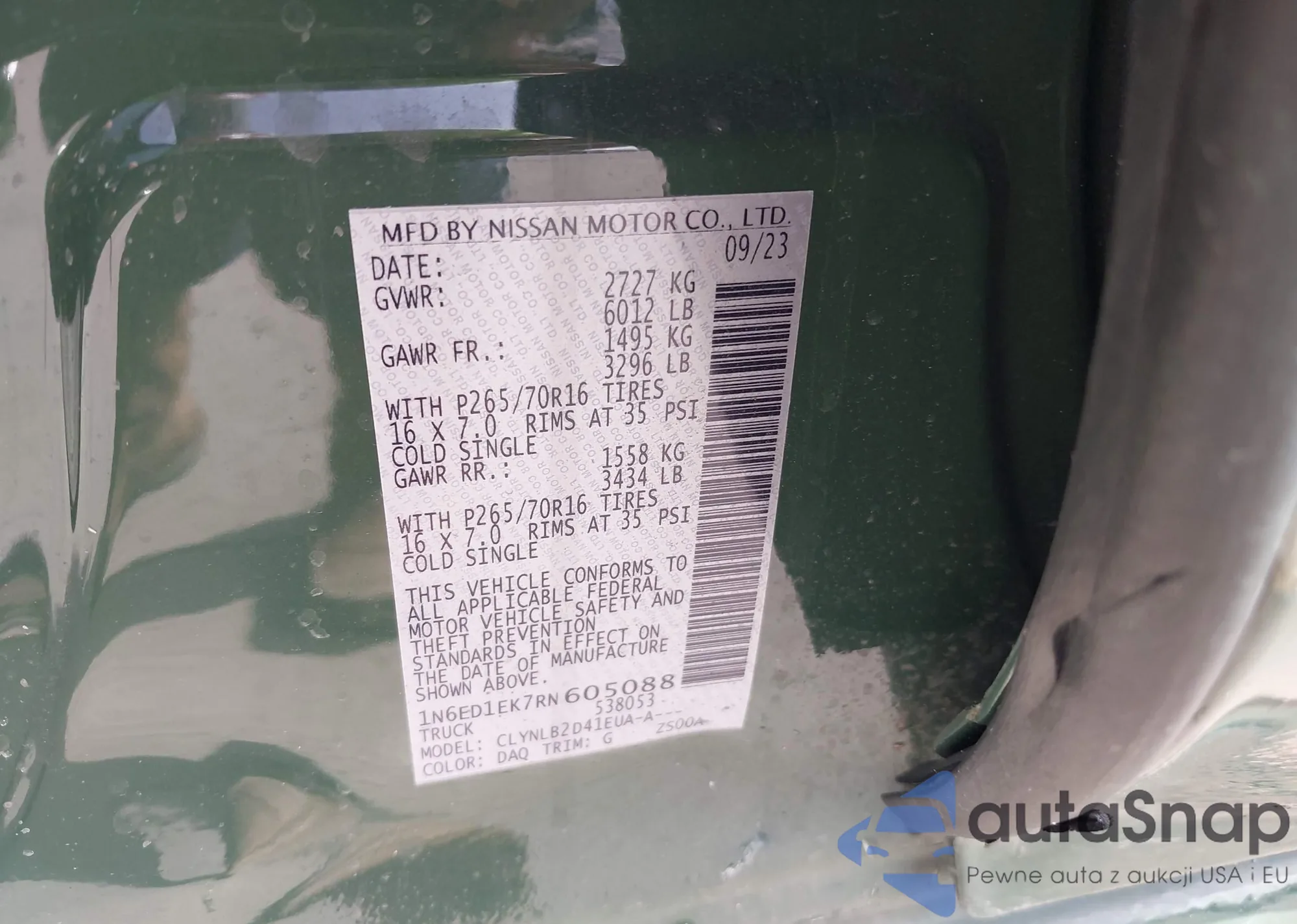 • VIN 1N6ED1EK7RN605088