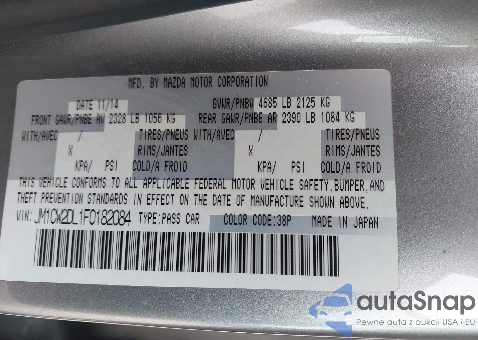 LOT: 42643851 VIN: JM1CW2DL1F0182084