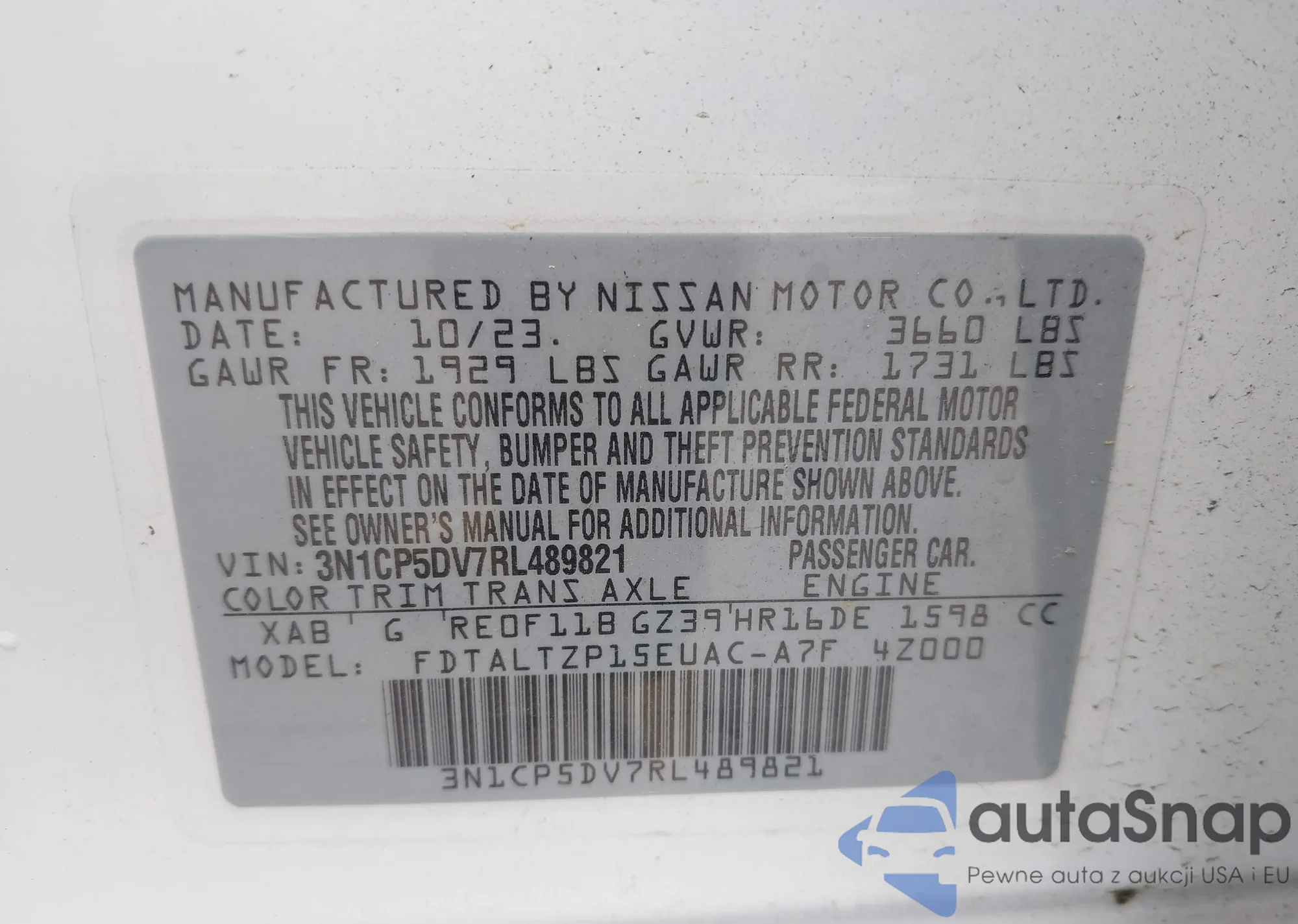 • VIN KNDERCAA7M7078485
