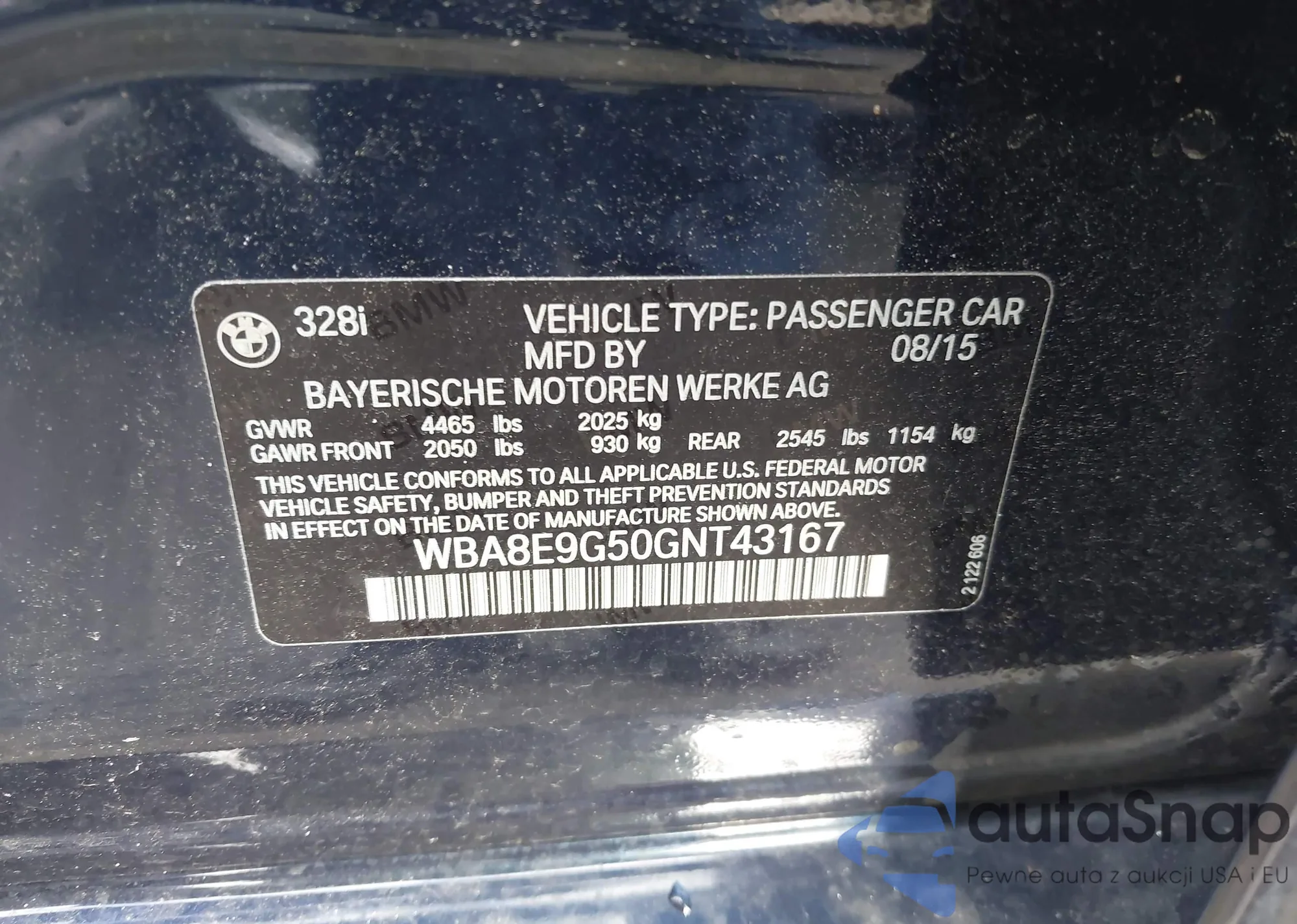 • VIN WBA8E9G50GNT43167