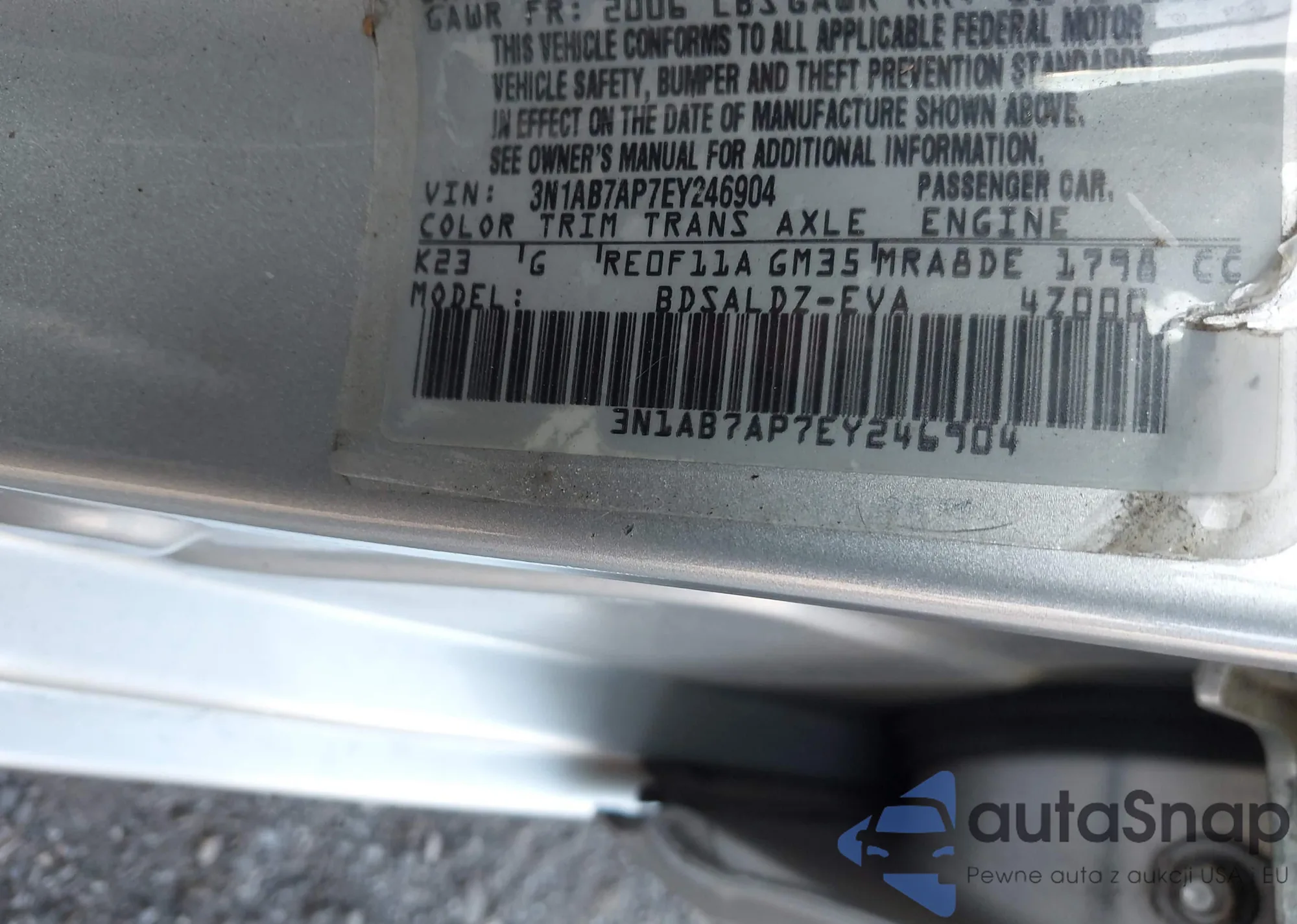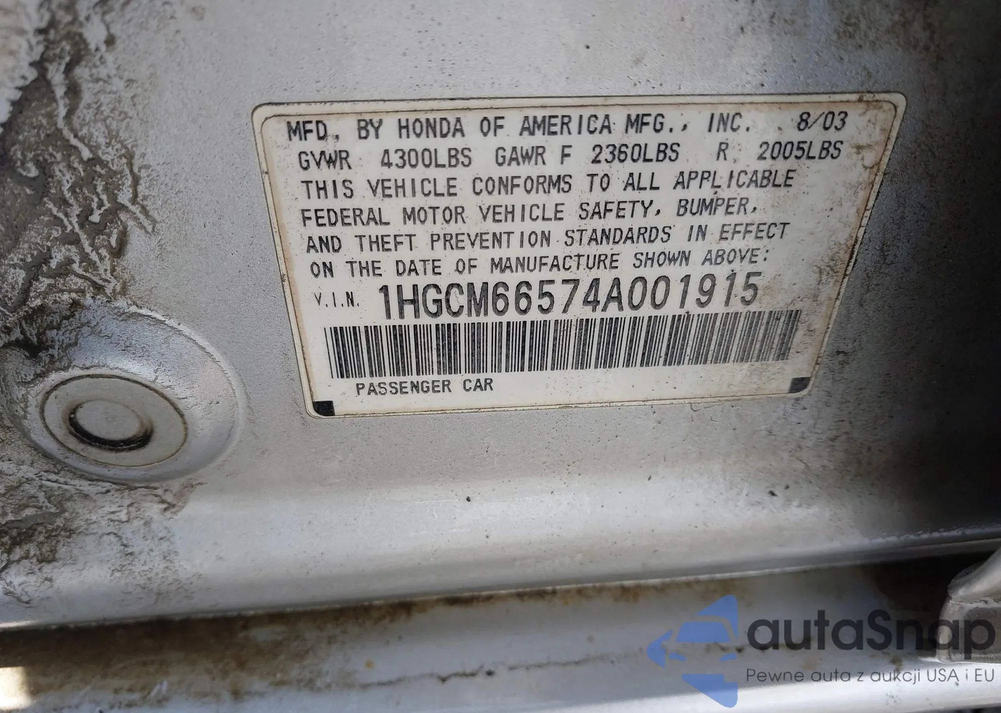 LOT: 42252550 VIN: 1HGCM66574A001915