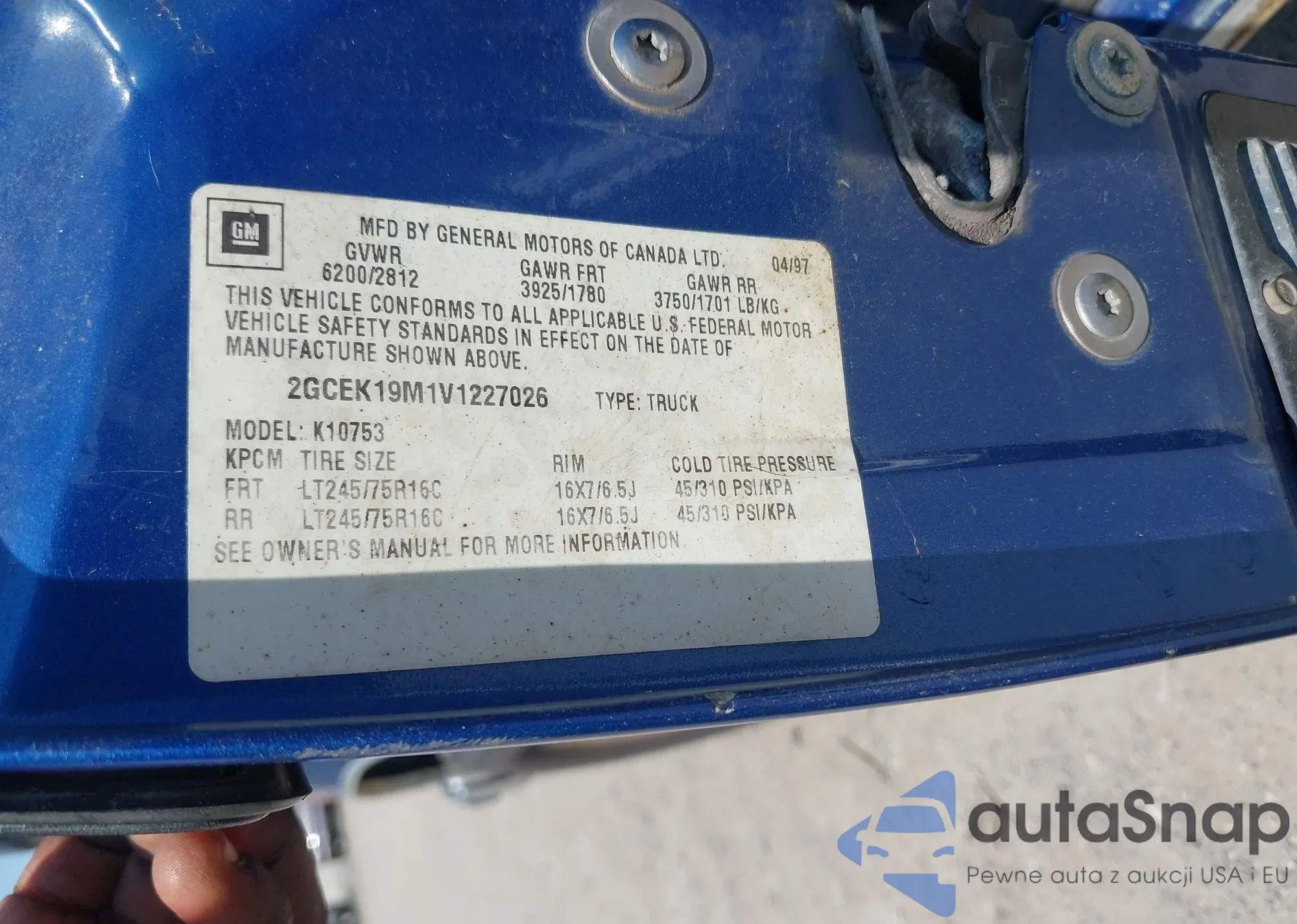 • VIN 2GCEK19M1V1227026