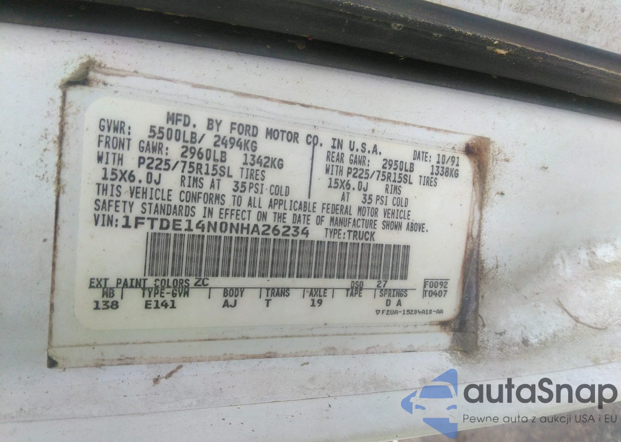 LOT: 42688014 VIN: 1FTDE14N0NHA26234