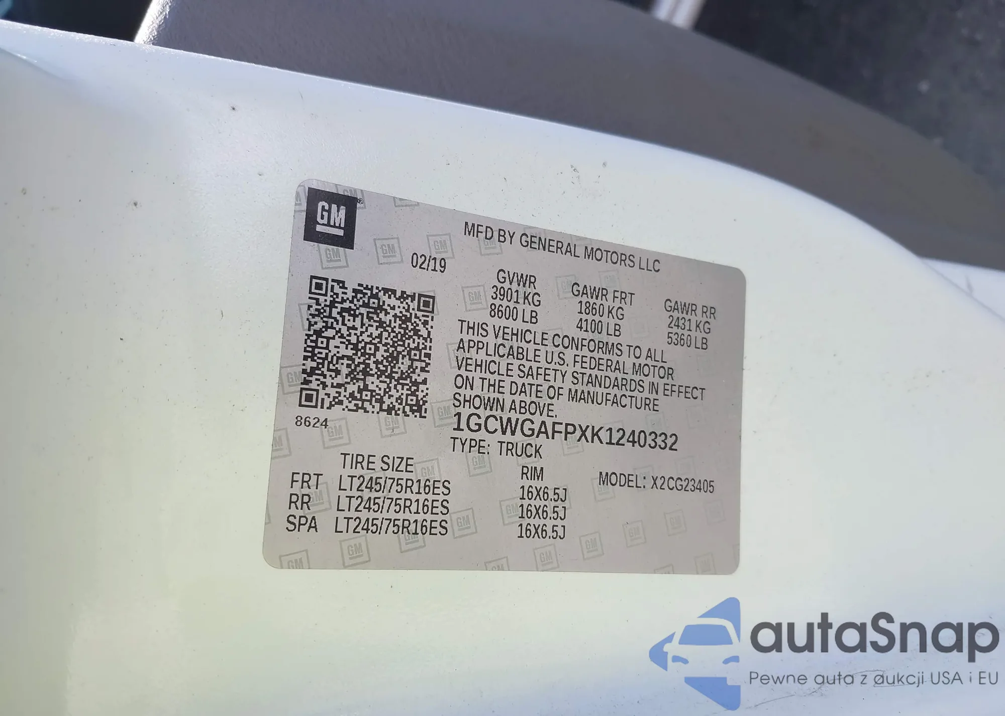 LOT: 42362272 VIN: 2GNAXUEV3K6223985