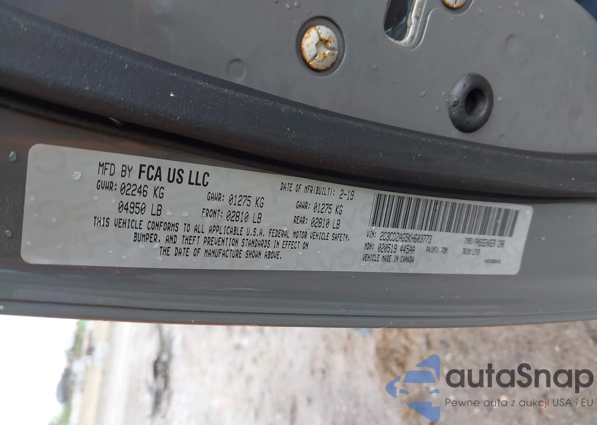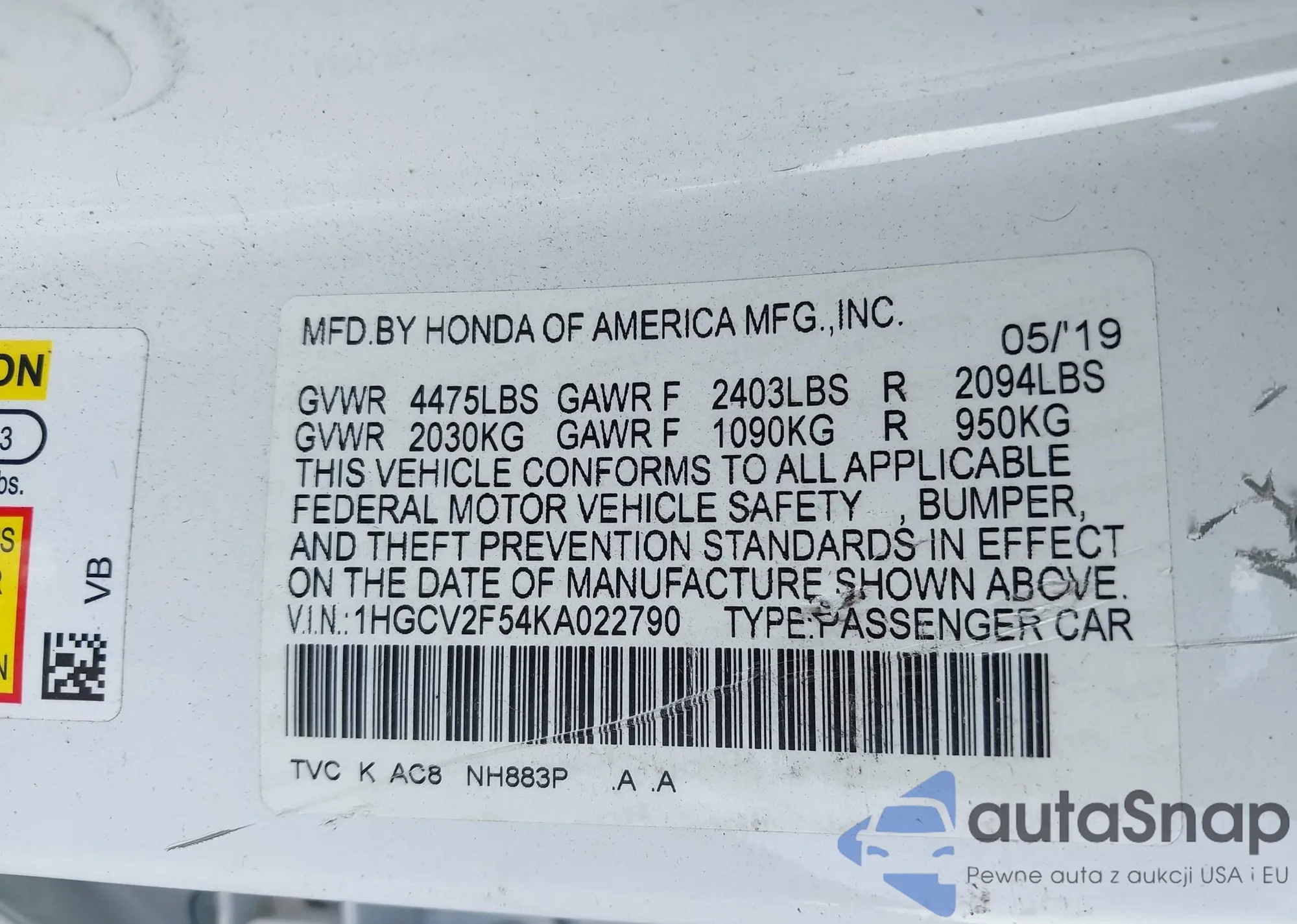 LOT: 42799900 VIN: 1HGCV2F54KA022790