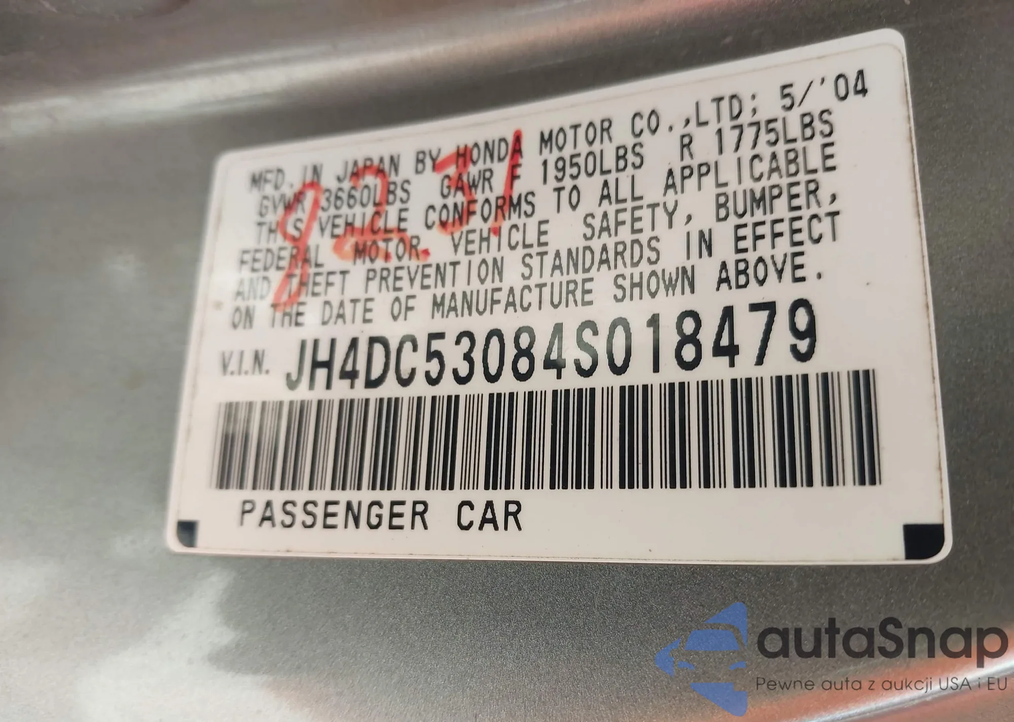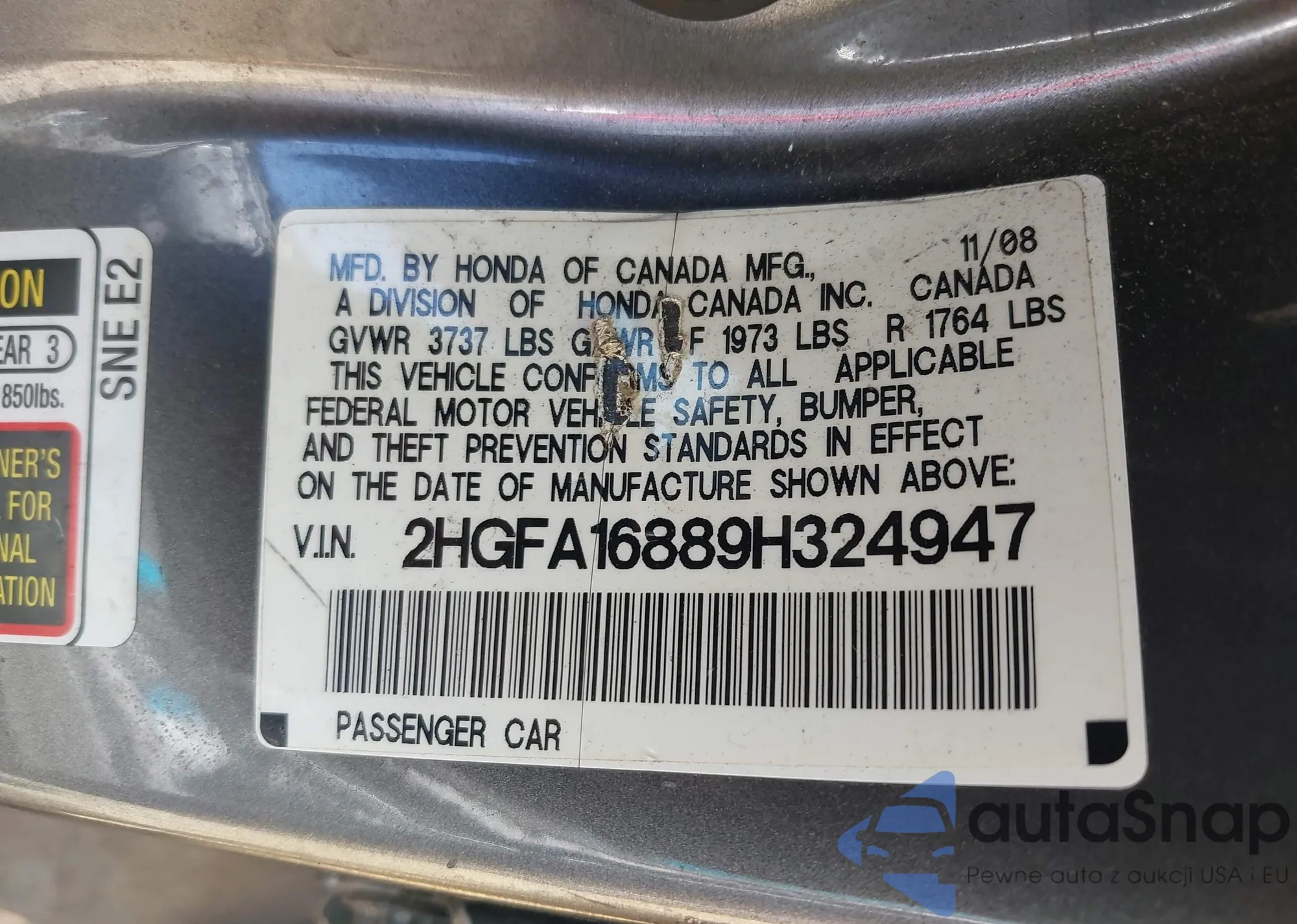 • VIN 2HGFA16889H324947