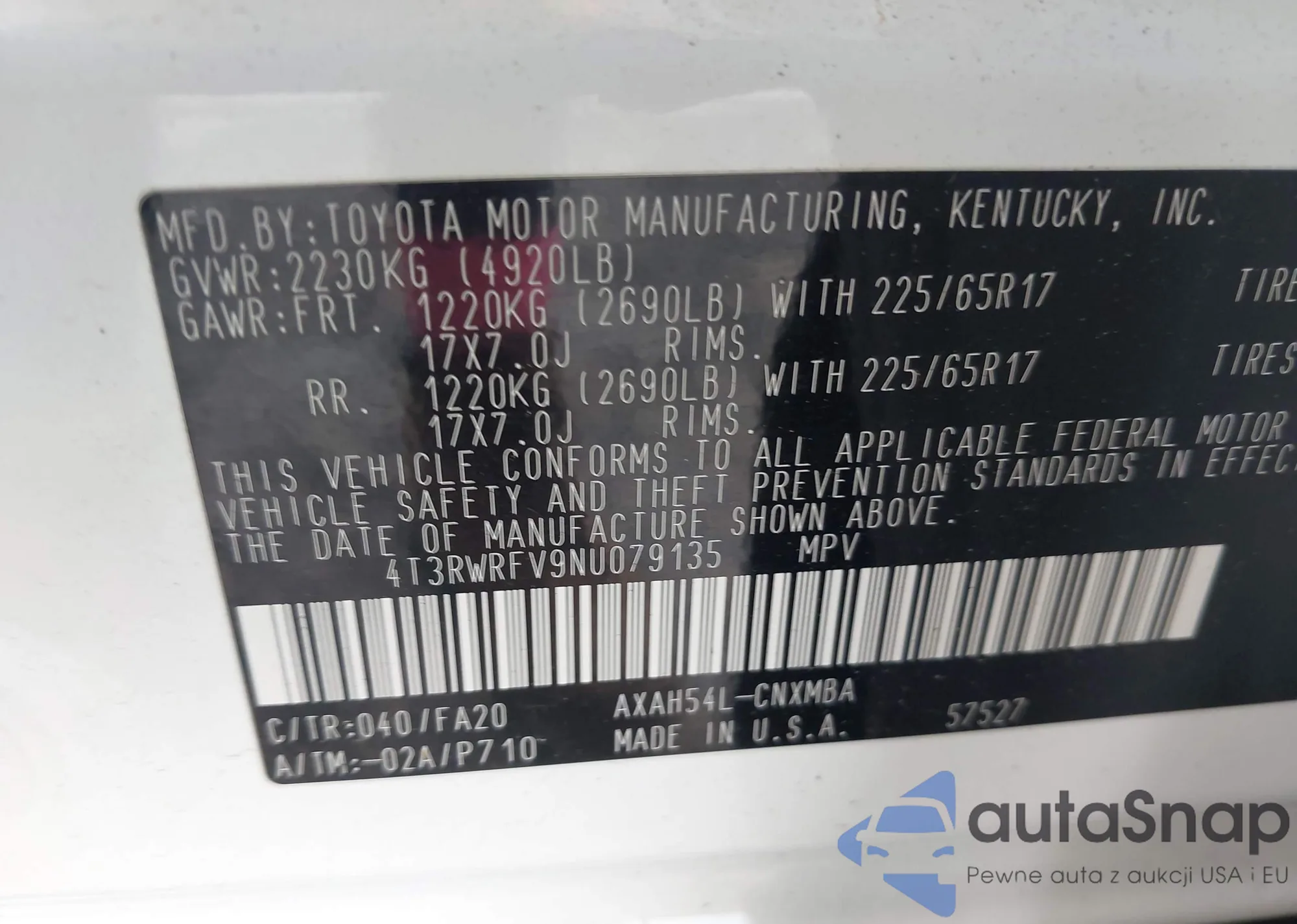 • VIN 4T3RWRFV9NU079135