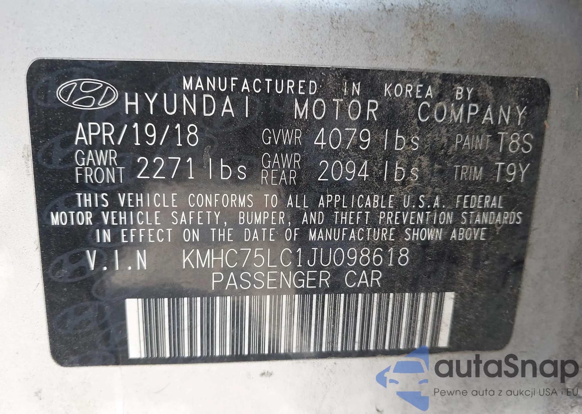 LOT: 42742792 VIN: KMHC75LC1JU098618