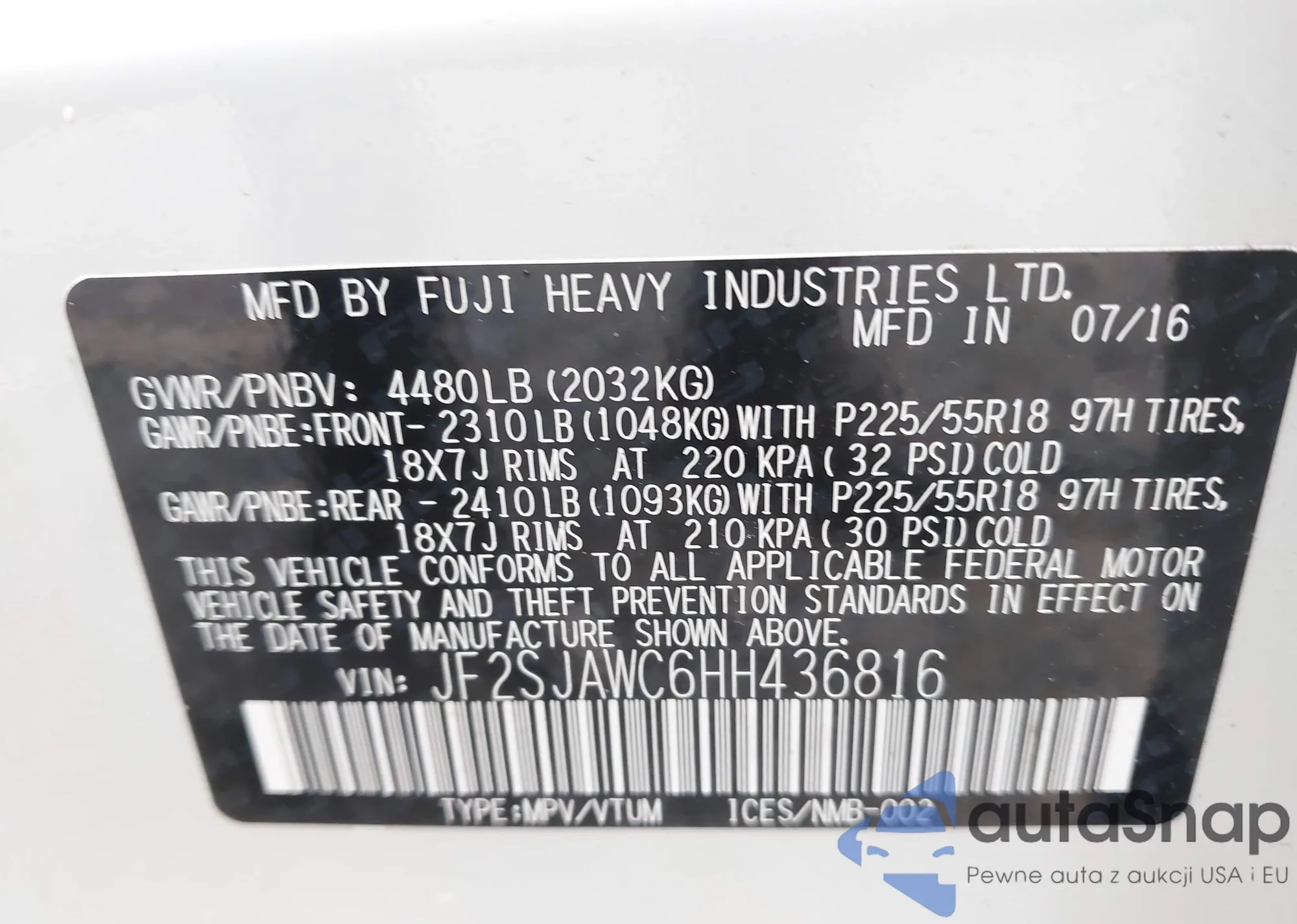 • VIN JF2SJAWC6HH436816