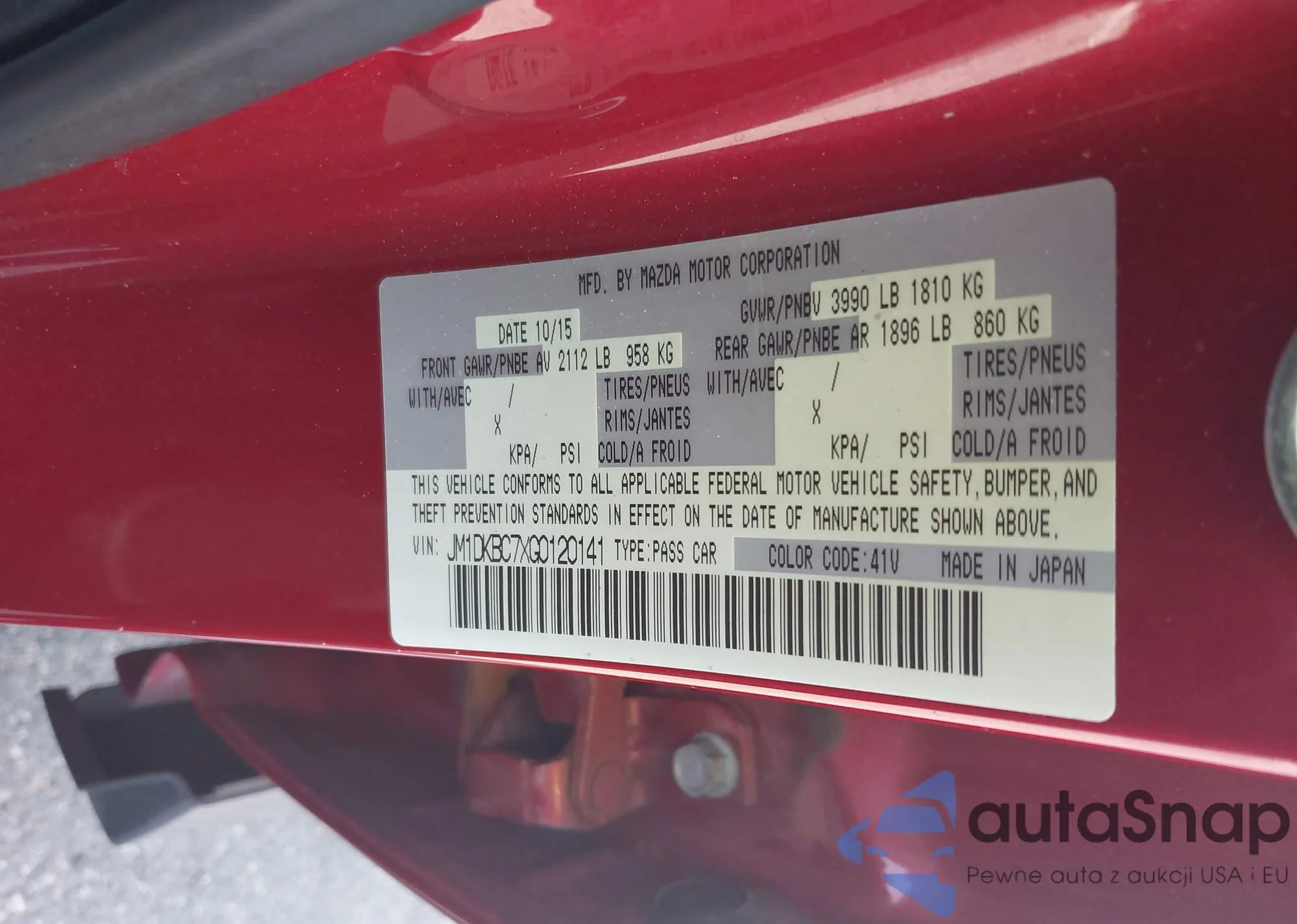 LOT: 42803081 VIN: JM1DKBC7XG0120141