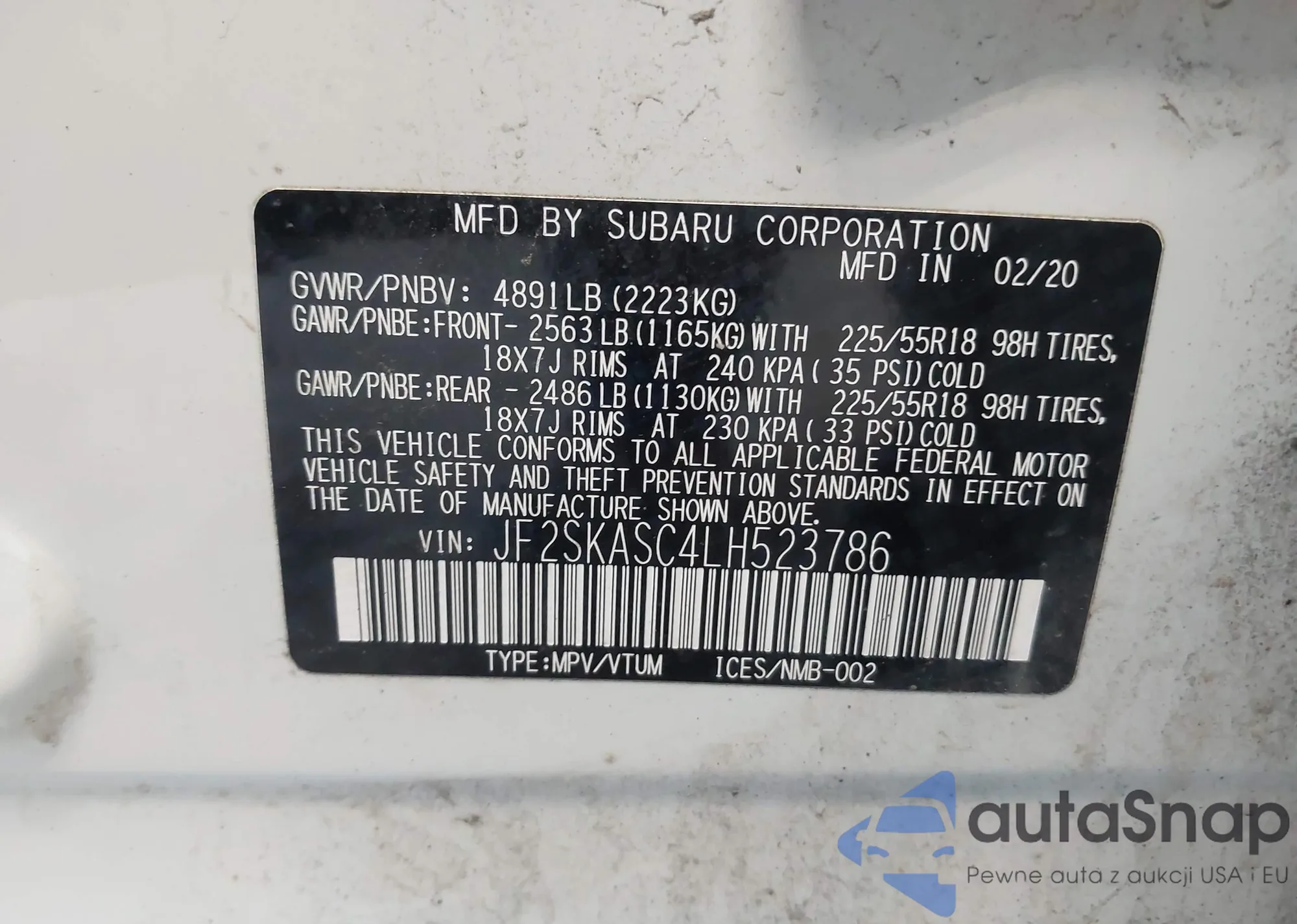 LOT: 42816506 VIN: JF2SKASC4LH523786