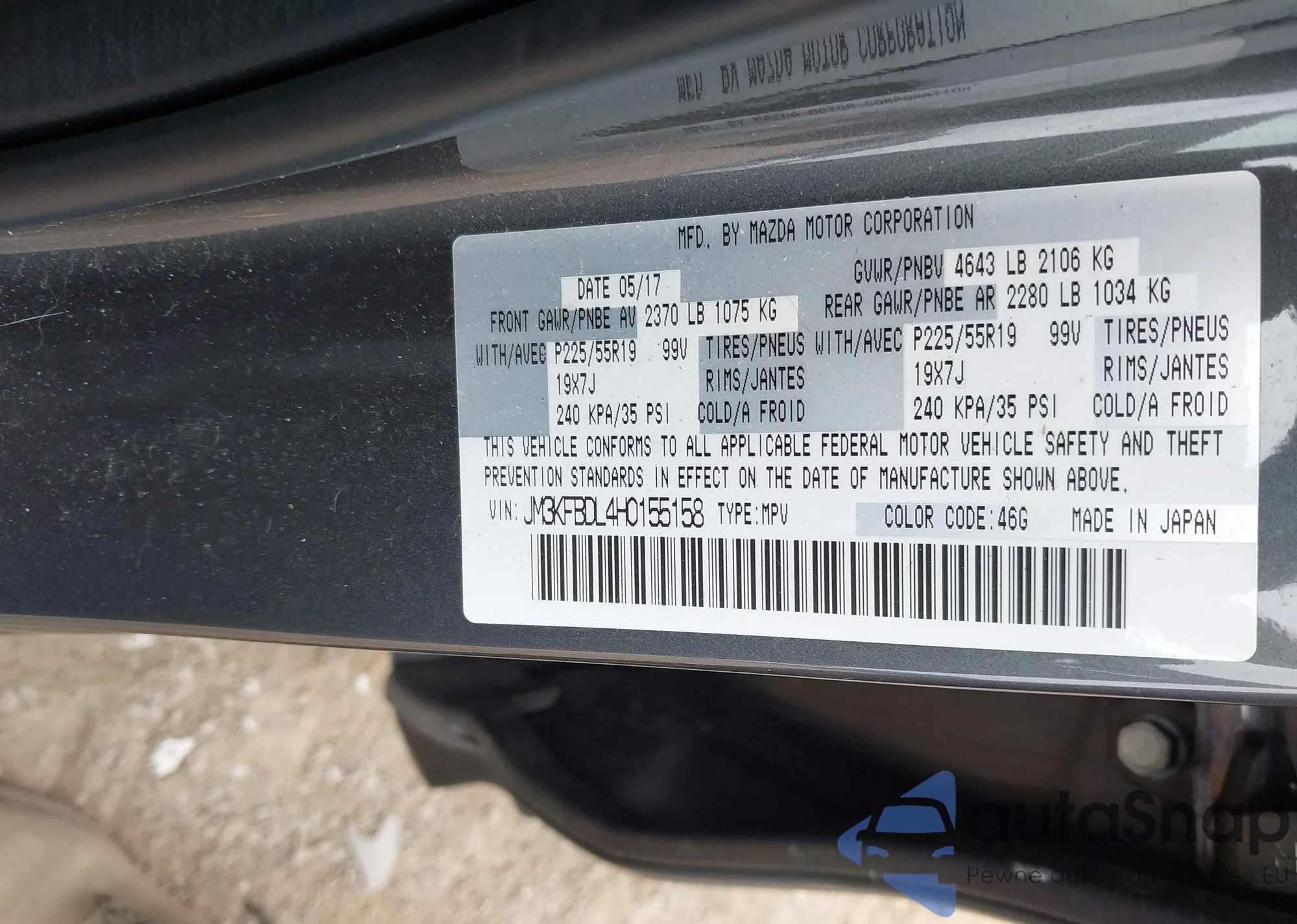 LOT: 42519870 VIN: JM3KFBDL4H0155158