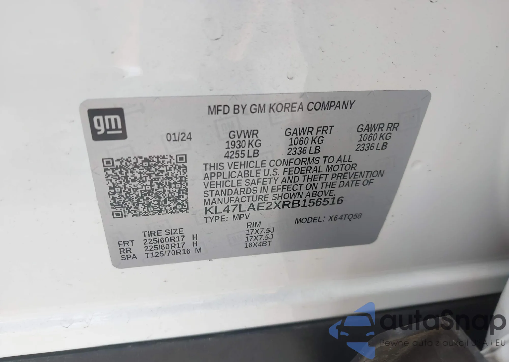 LOT: 42757506 VIN: KL47LAE2XRB156516