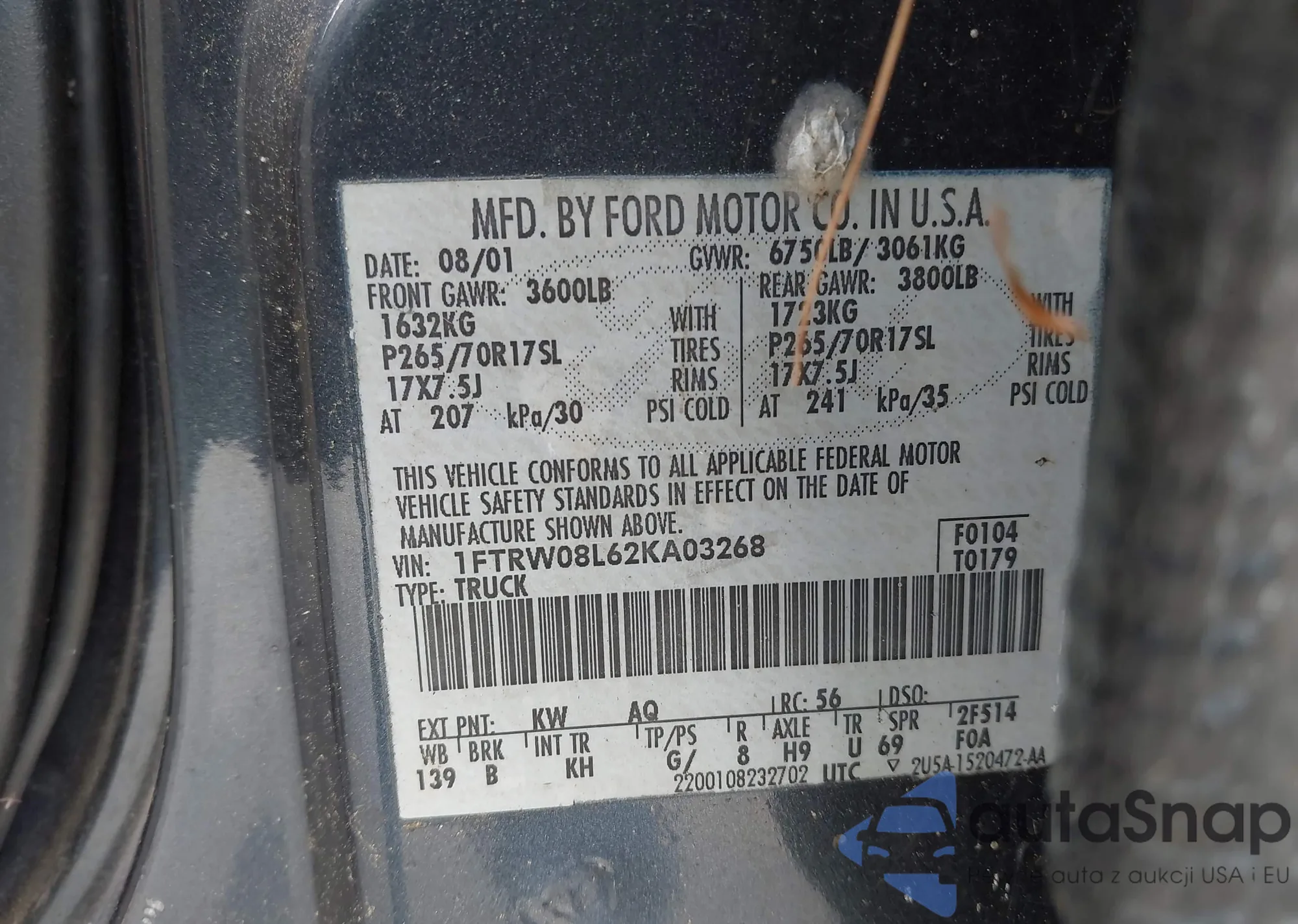 LOT: 42110432 VIN: 1FTNW20S5XEB80963