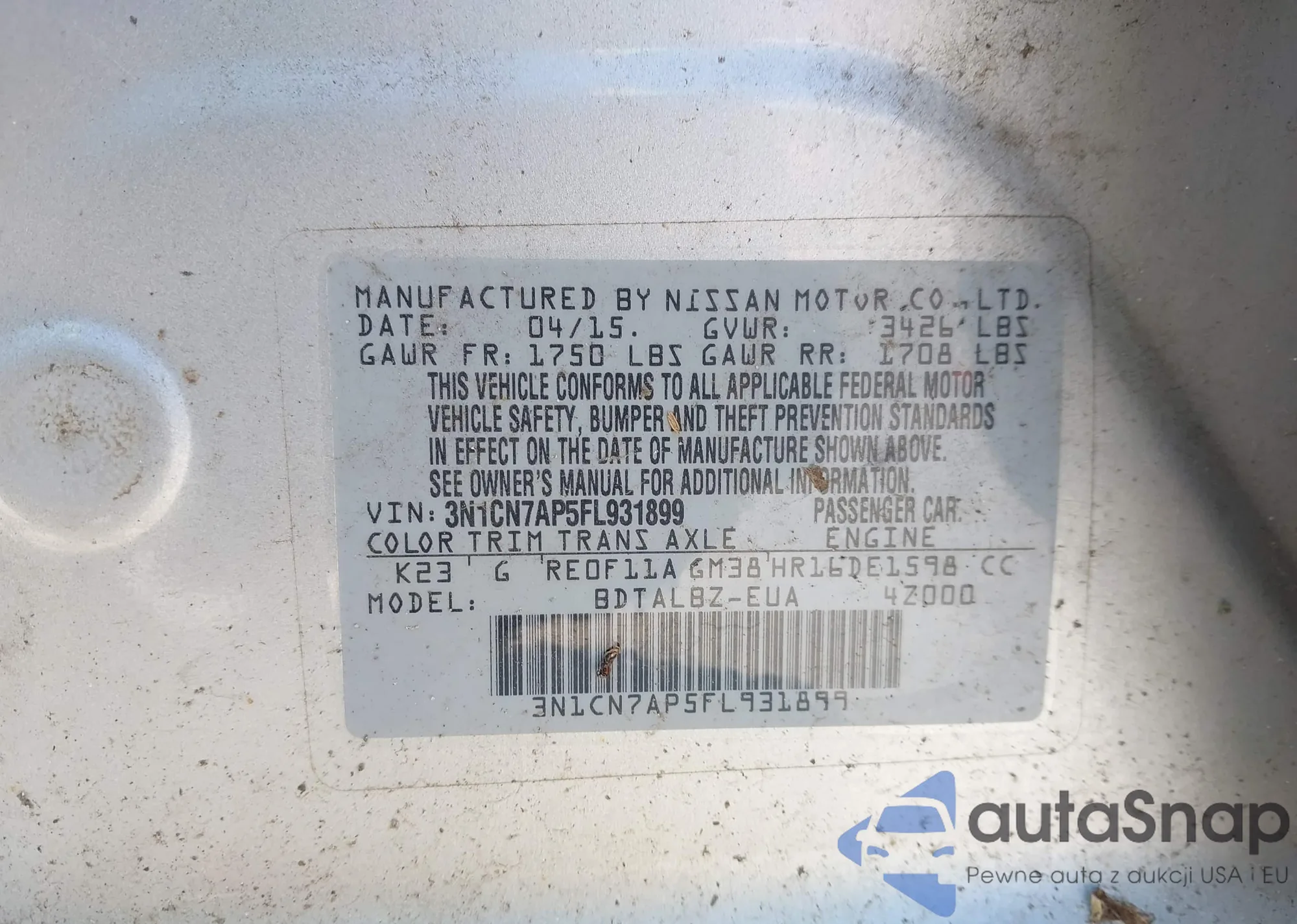 LOT: 42783596 VIN: JNKCV51F34M717049