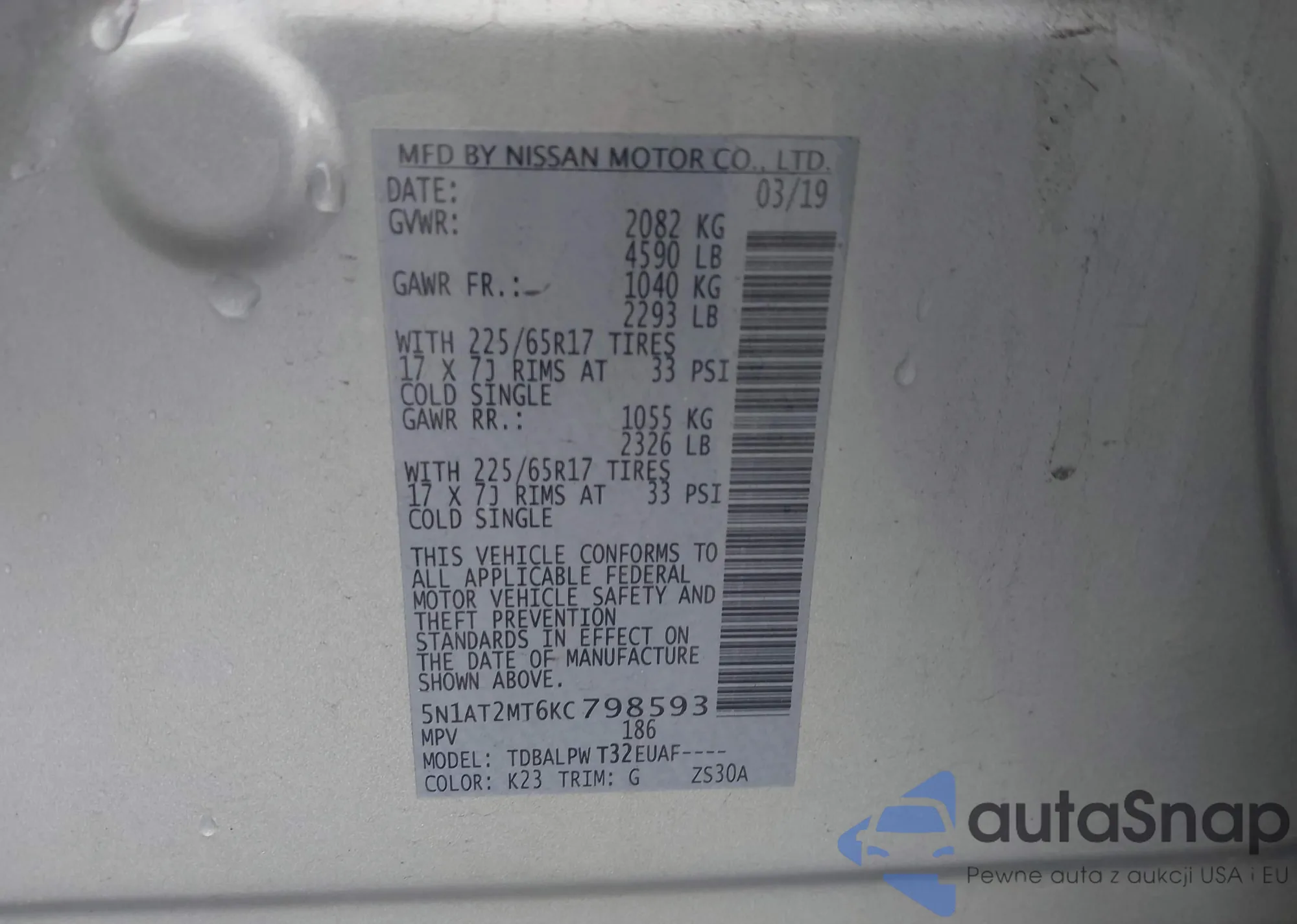 • VIN 2C3CDXCT6KH681882