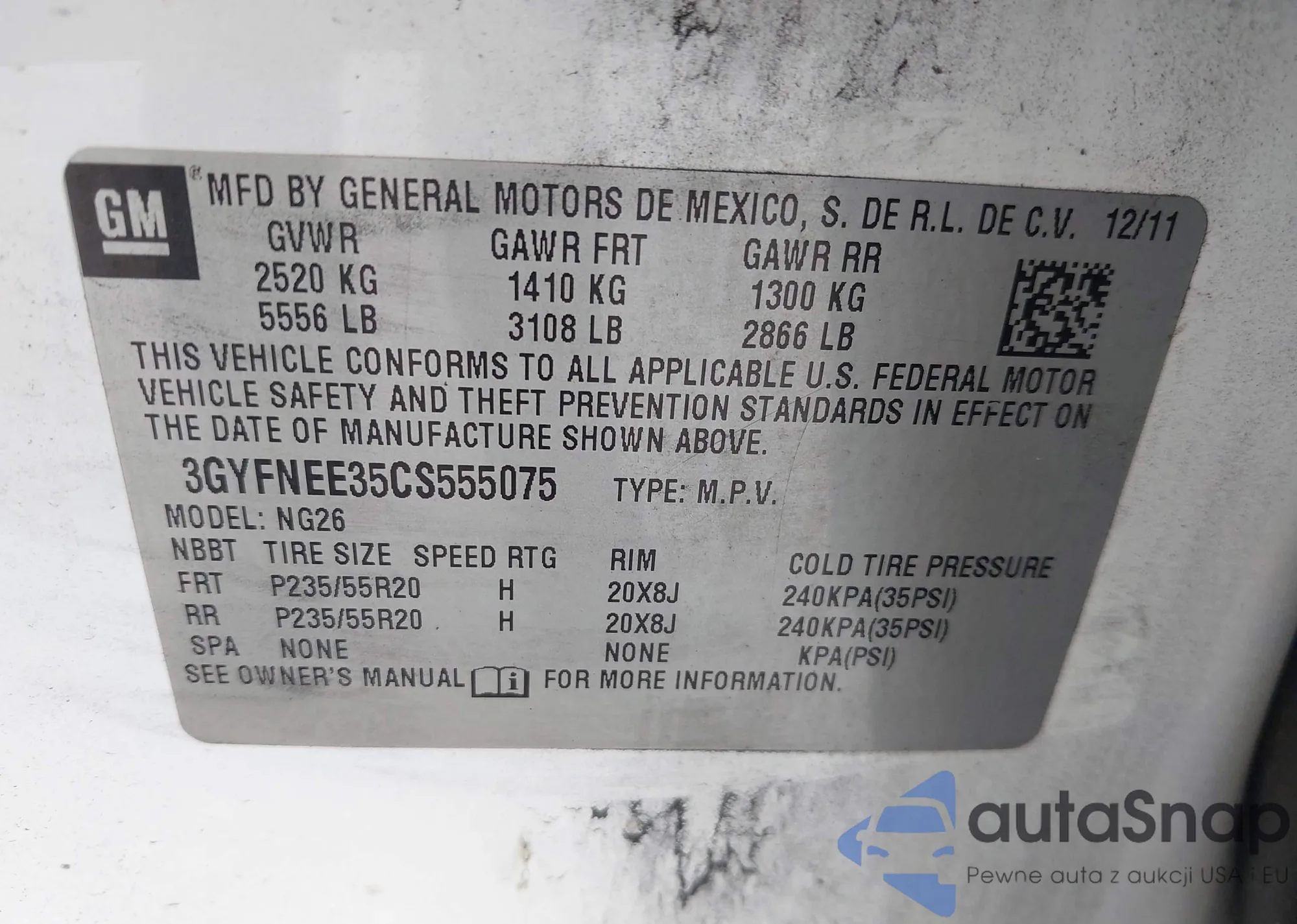 • VIN 3GYFNEE35CS555075