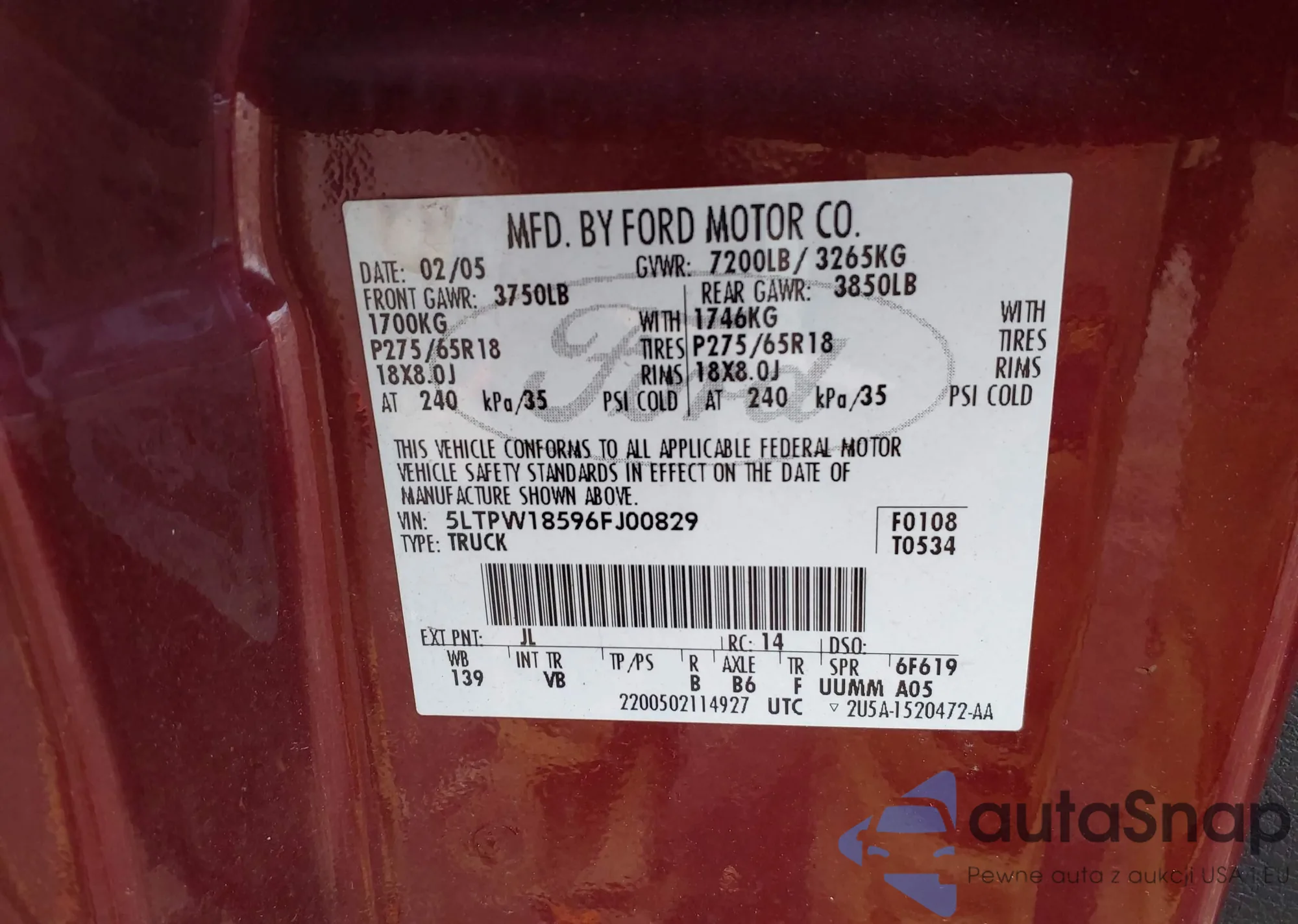 • VIN 5LTPW18596FJ00829