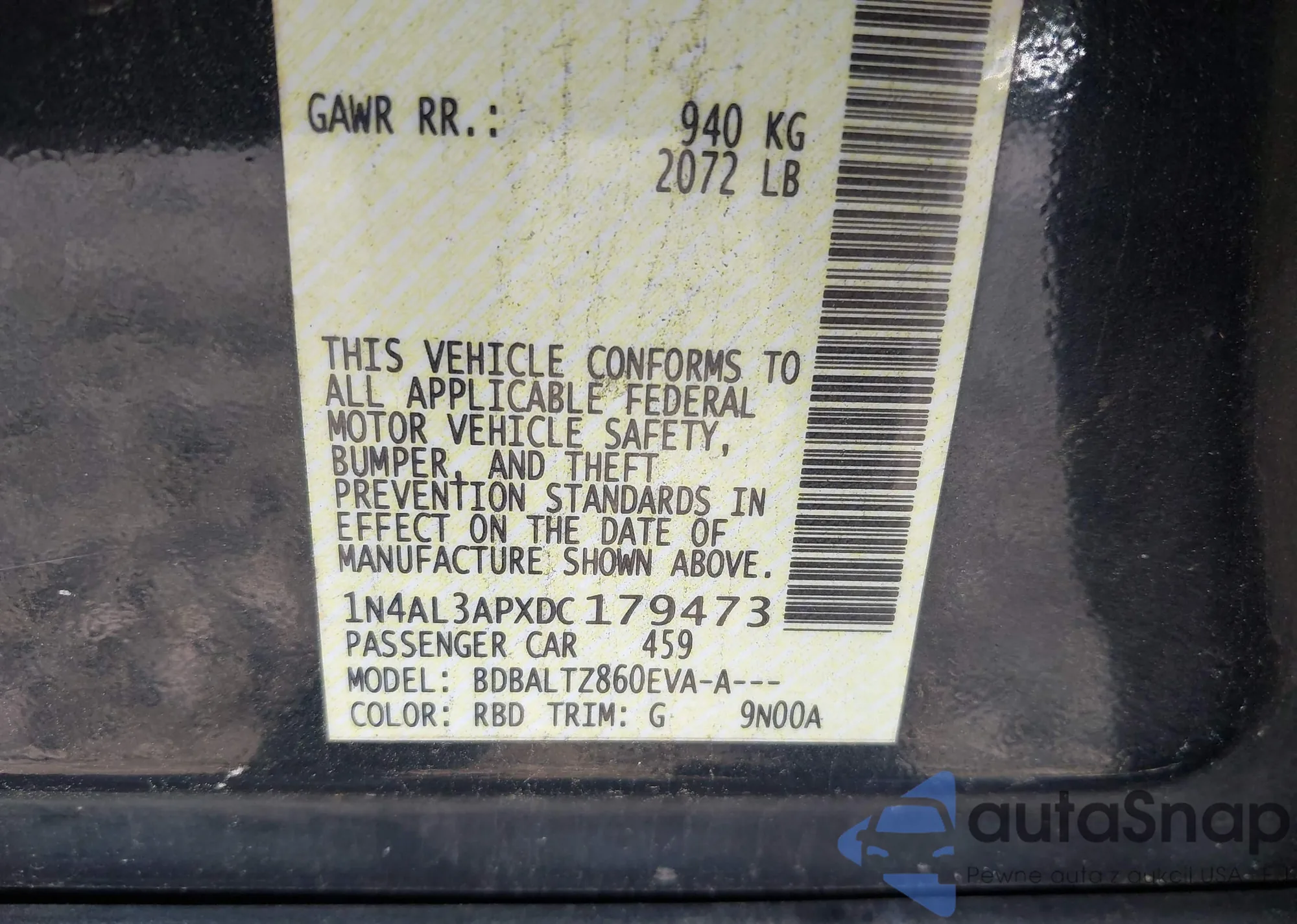 • VIN 1N4AL3APXDC179473