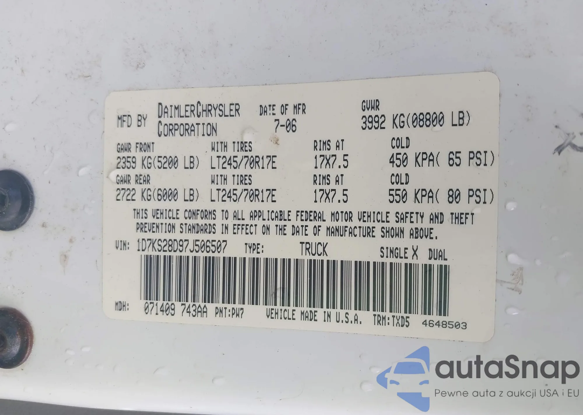 • VIN 1D7KS28D97J506507