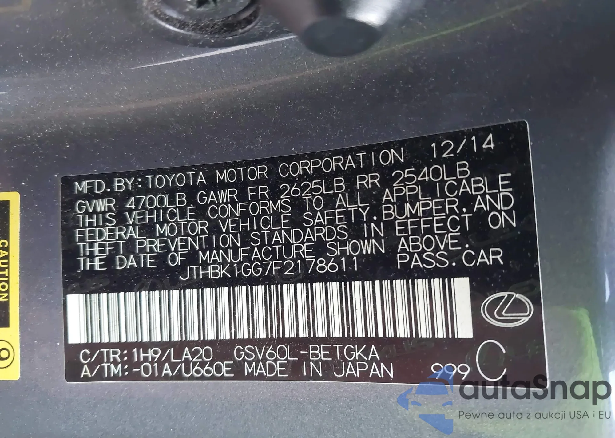 • VIN JTHBK1GG7F2178611