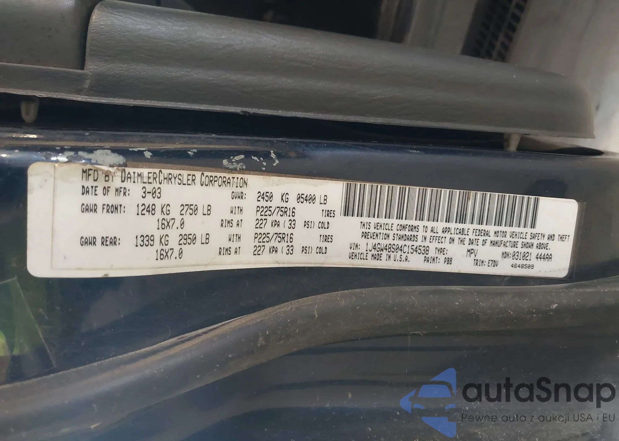 LOT: 42736650 VIN: 1J4GW48S04C154538