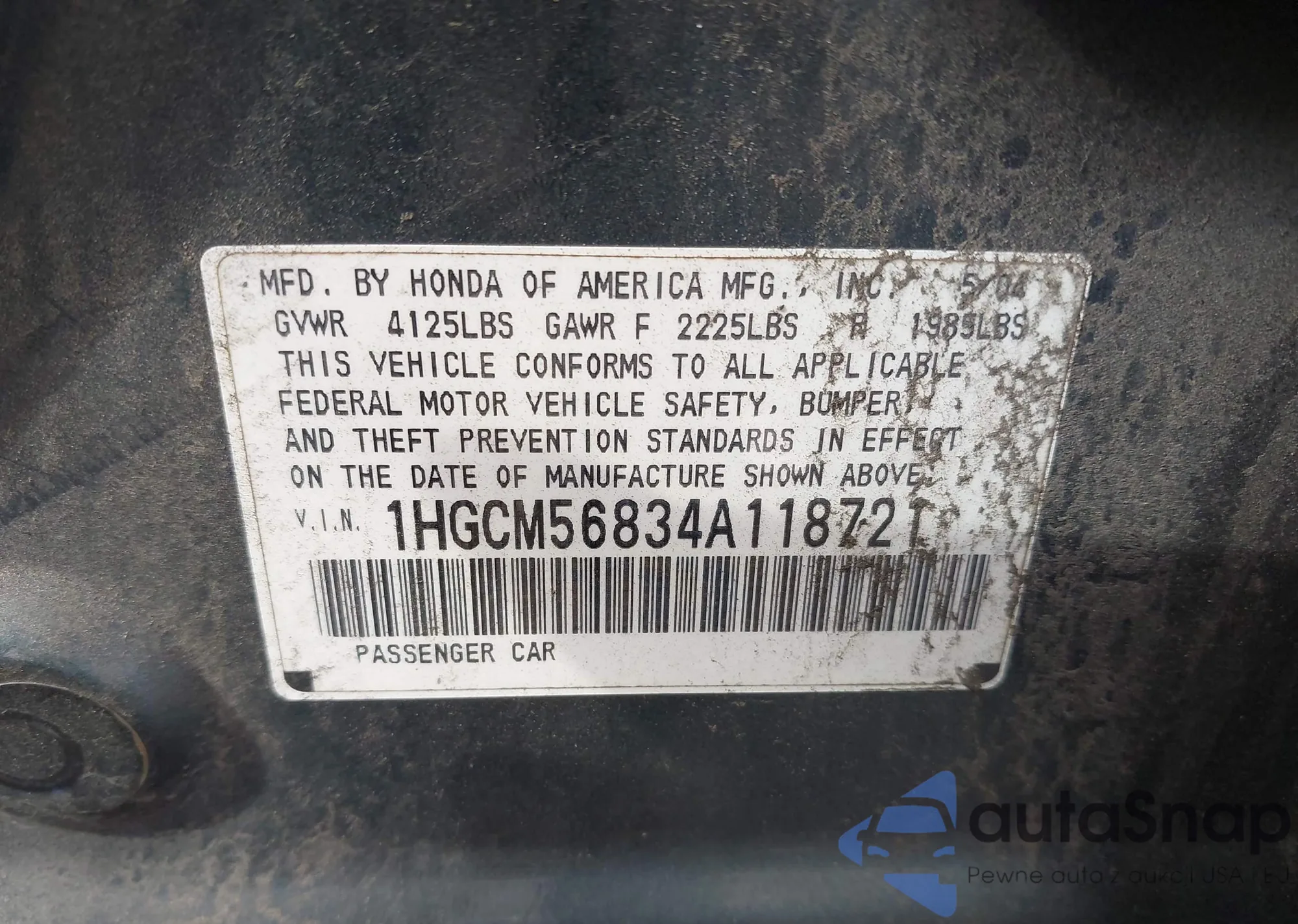 LOT: 42718078 VIN: 1HGCM56834A118721