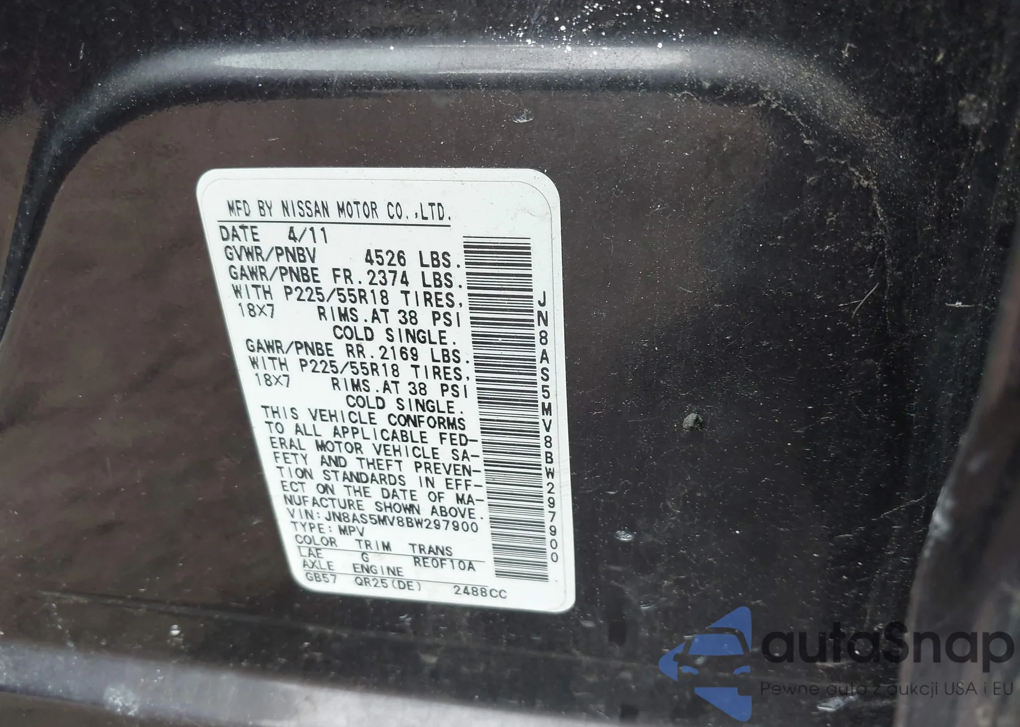 • VIN JN8AS5MV8BW297900