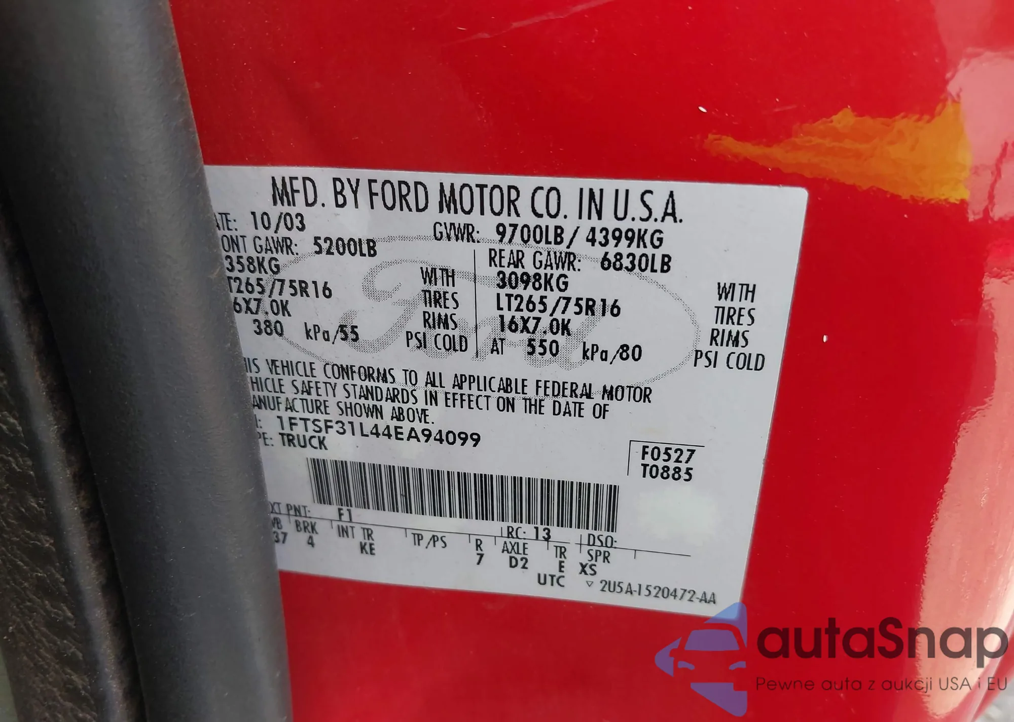 • VIN 1FTSF31L44EA94099