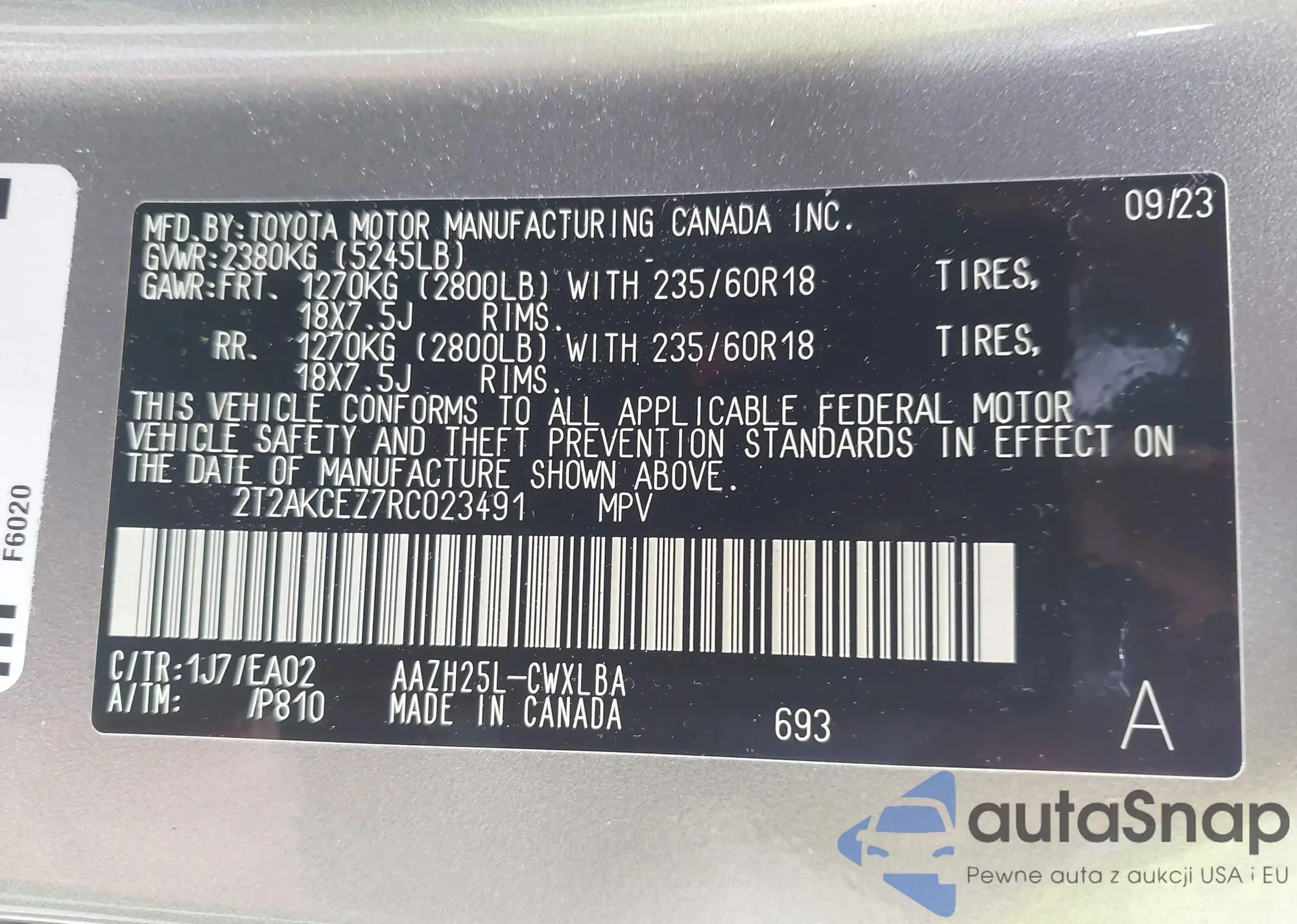 LOT: 42781873 VIN: YV4CZ852961294462