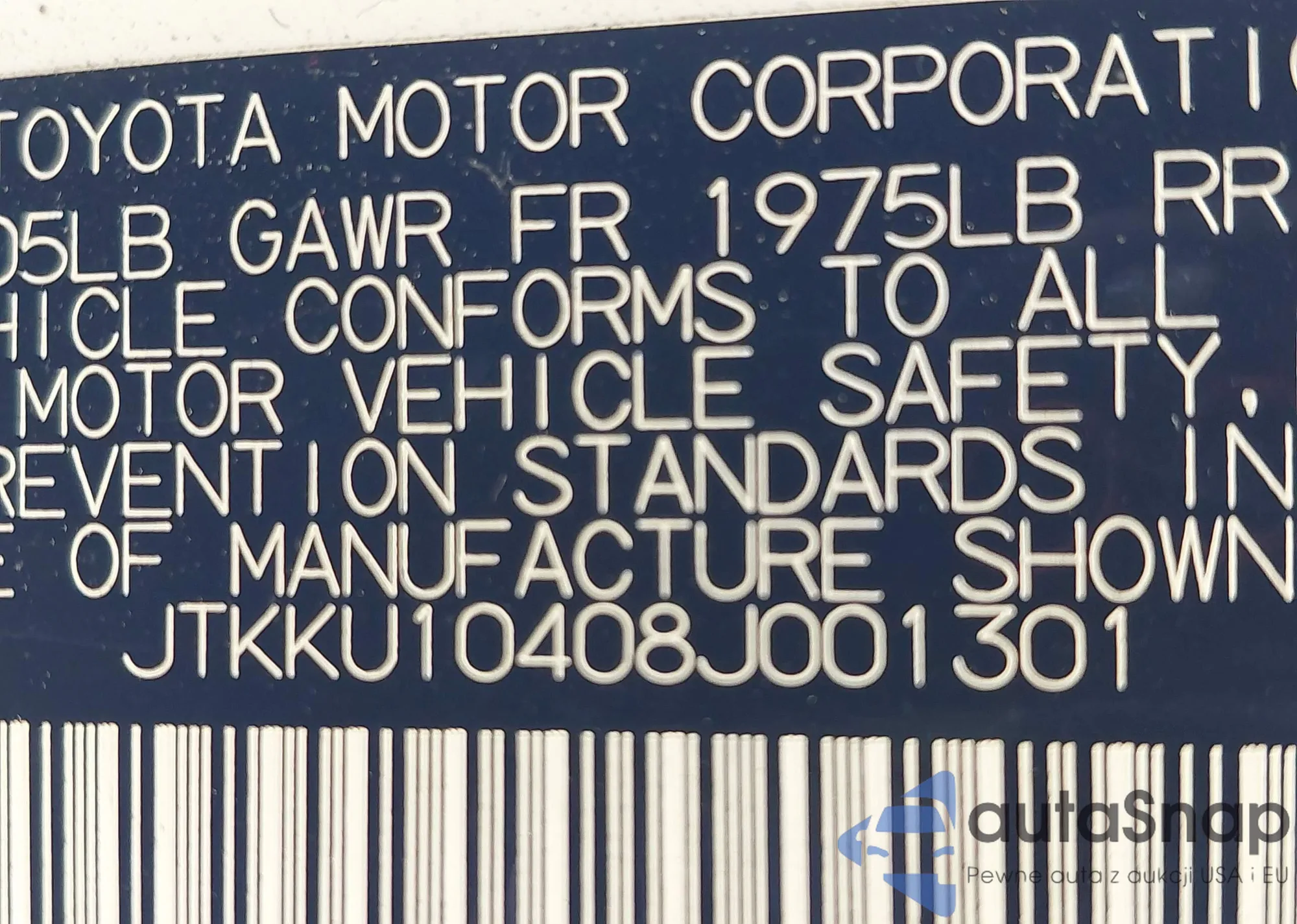LOT: 42721181 VIN: 1HGCS12899A026072