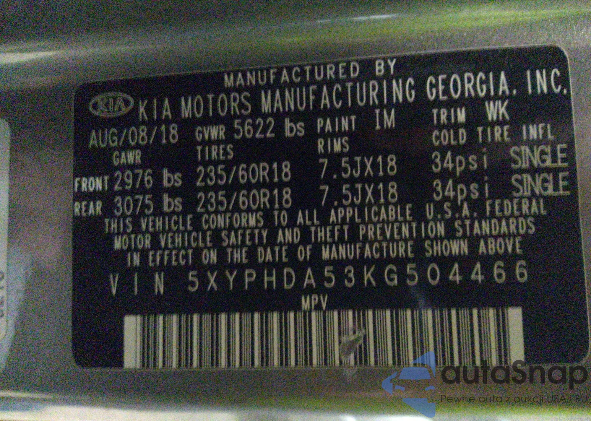 LOT: 34634137 VIN: 5XYPHDA53KG504466
