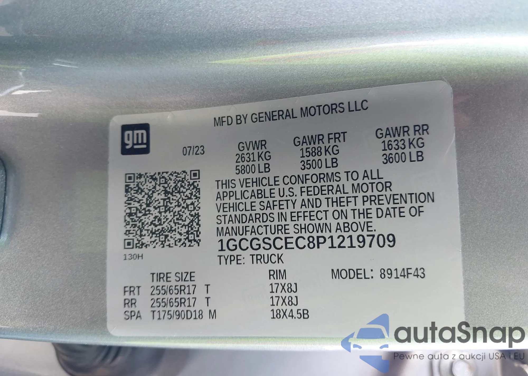 LOT: 42052135 VIN: 1GCGSCEC8P1219709