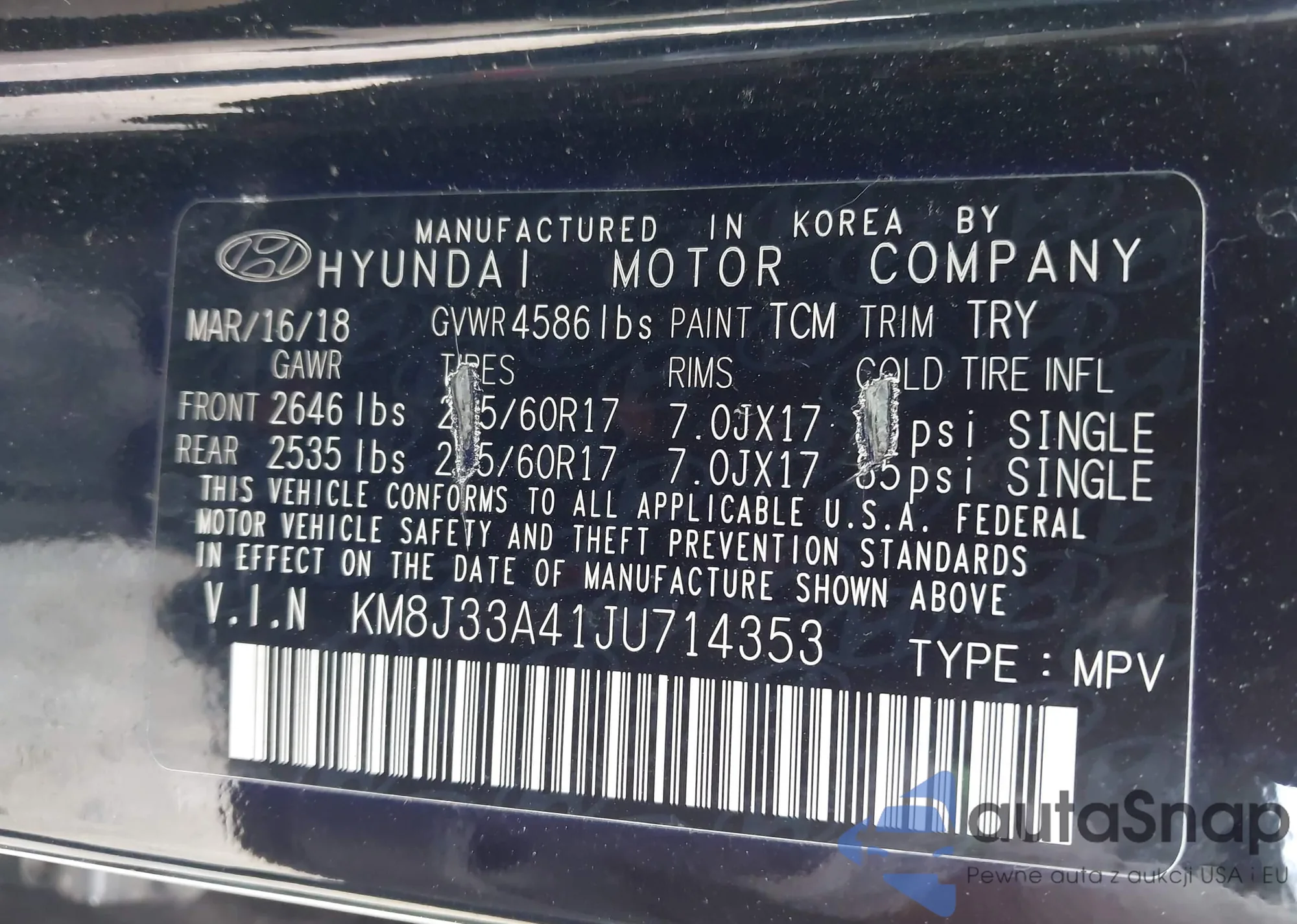 • VIN KM8J33A41JU714353