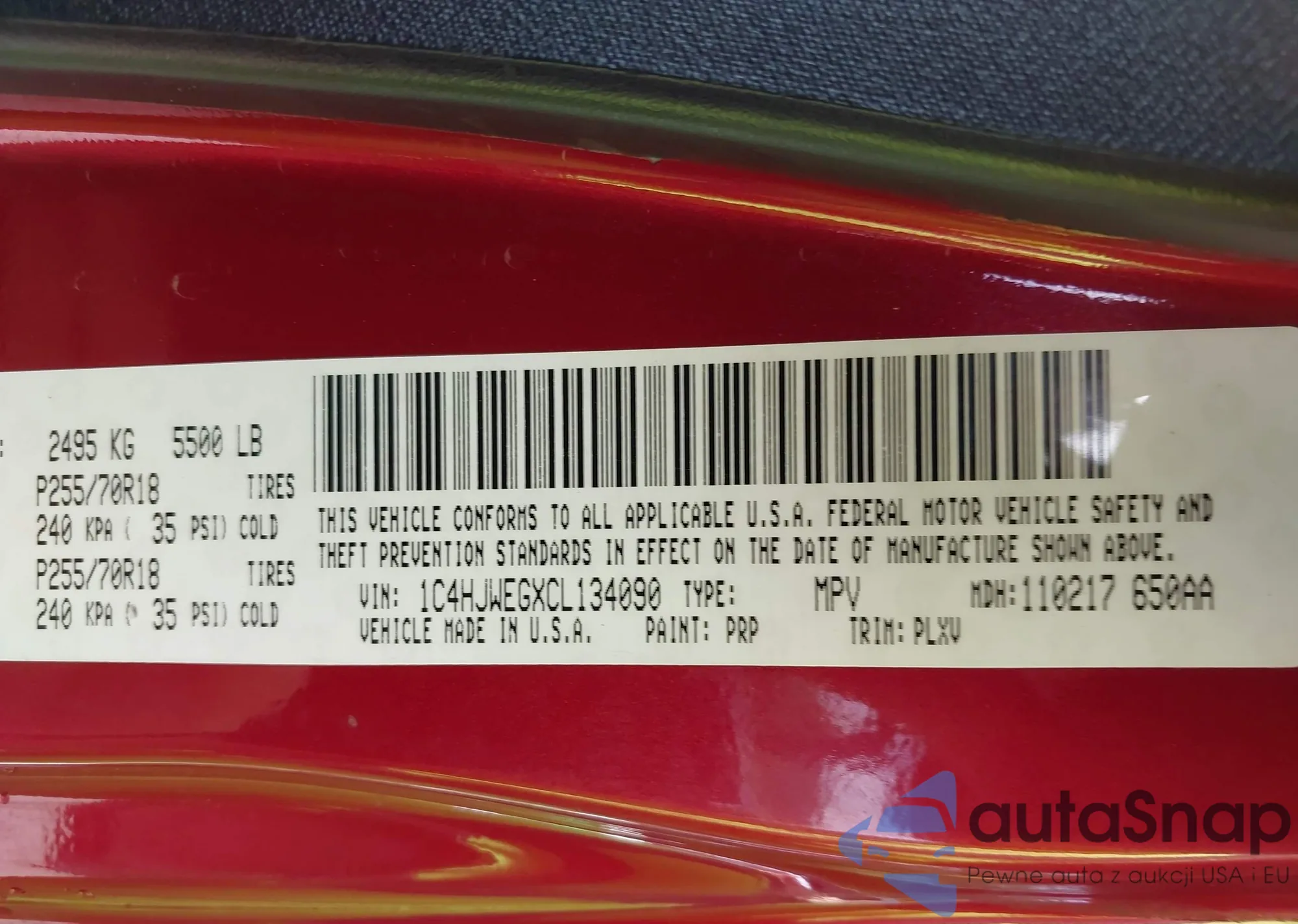 LOT: 42092053 VIN: KM8J33A41JU714353