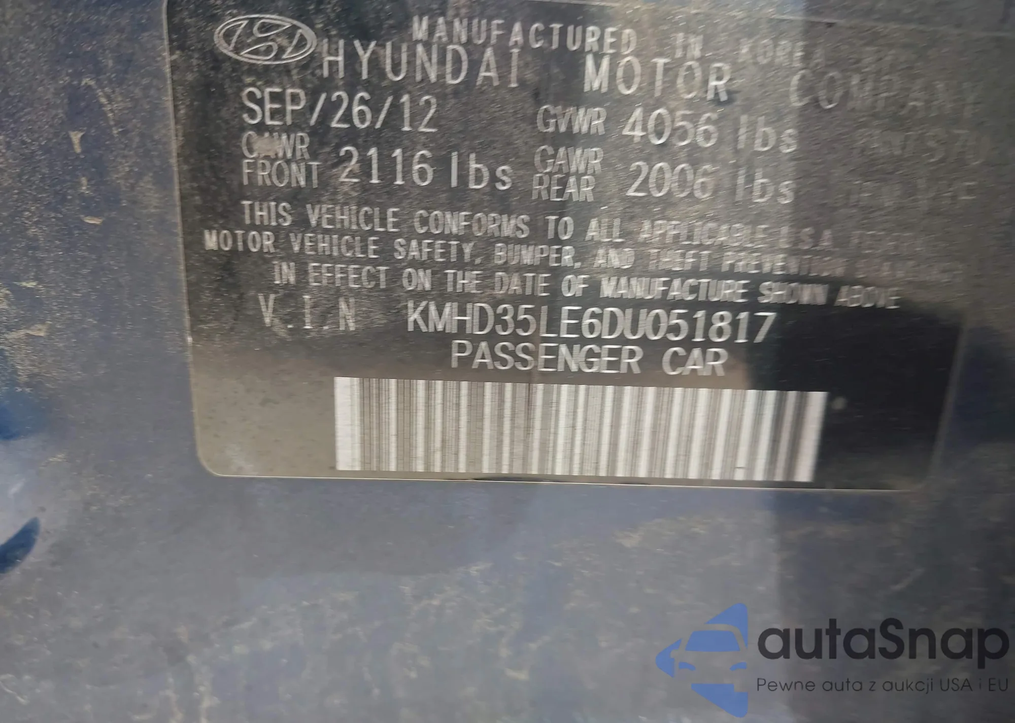 • VIN KMHD35LE6DU051817