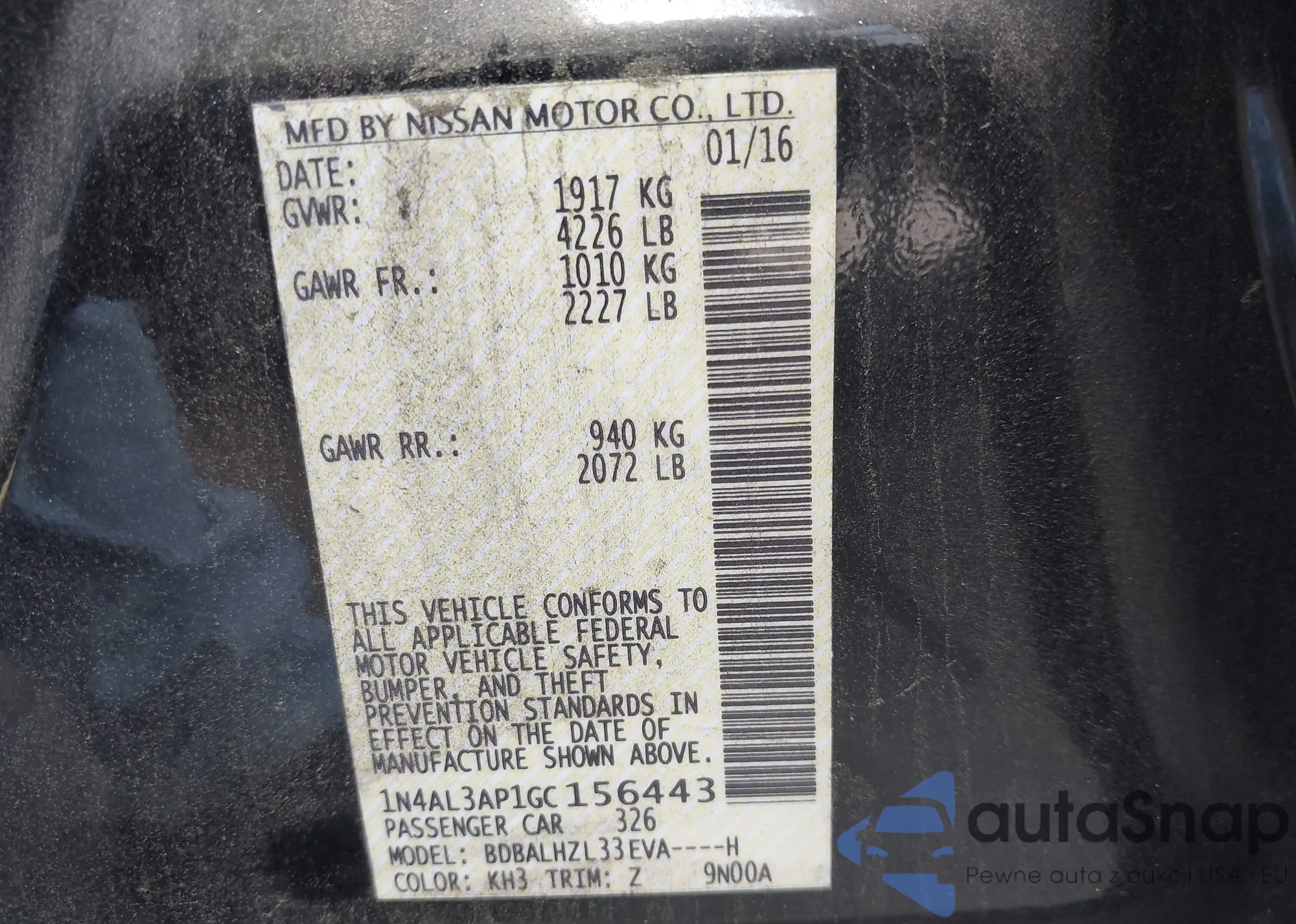 • VIN 1N4AL3AP1GC156443
