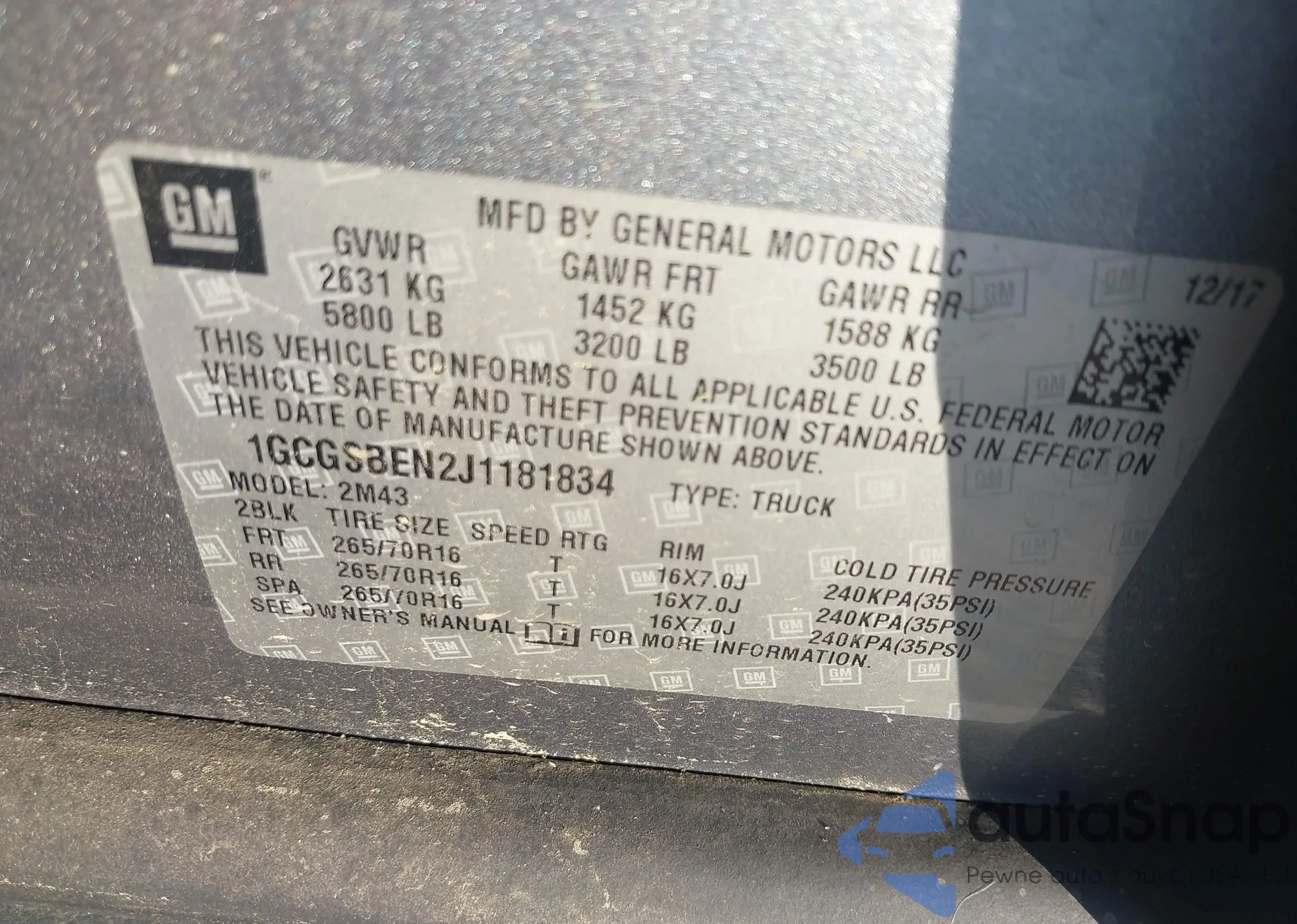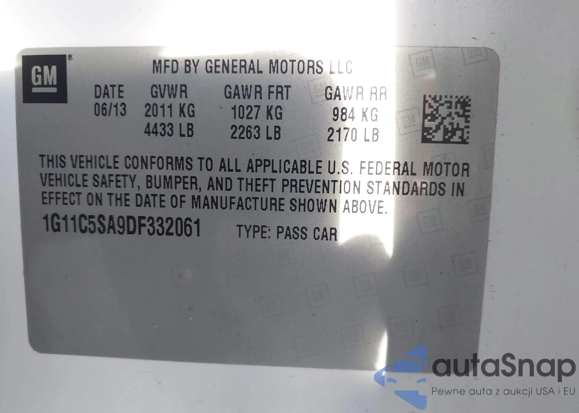 LOT: 42699289 VIN: 1G11C5SA9DF332061
