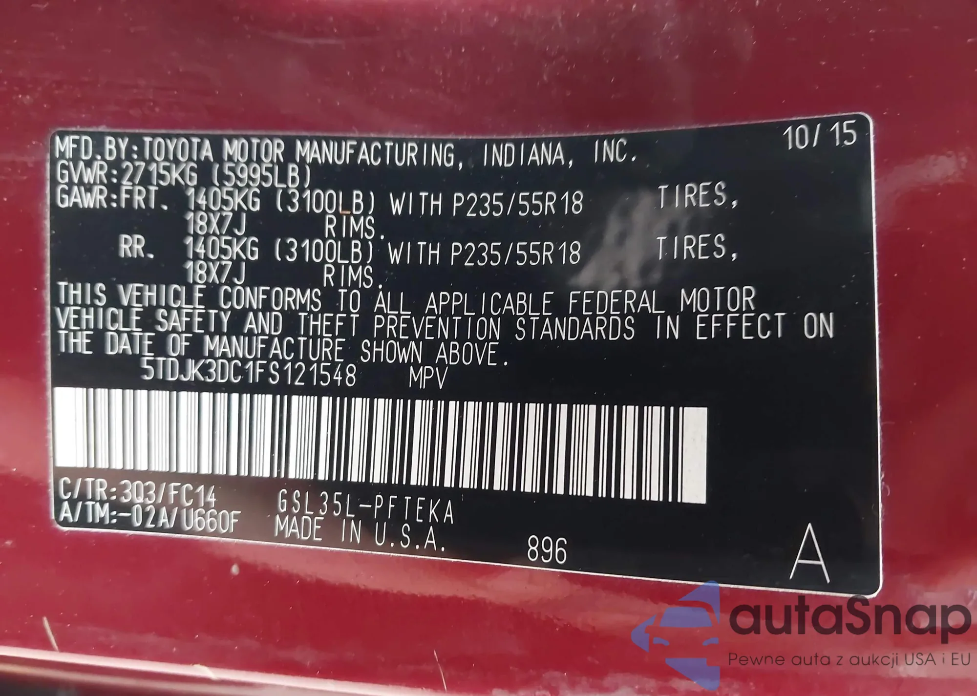 LOT: 42750453 VIN: 5TDJK3DC1FS121548