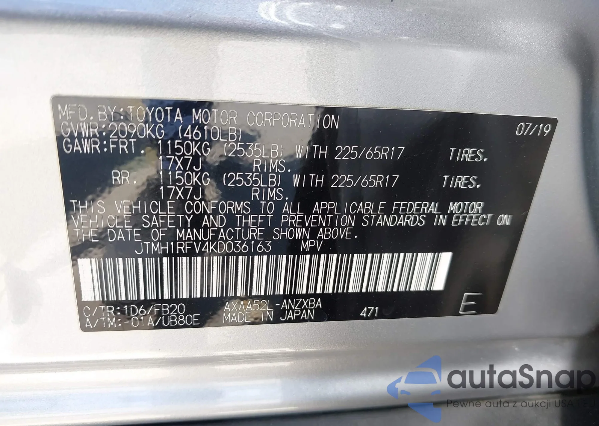 • VIN JTMH1RFV4KD036163