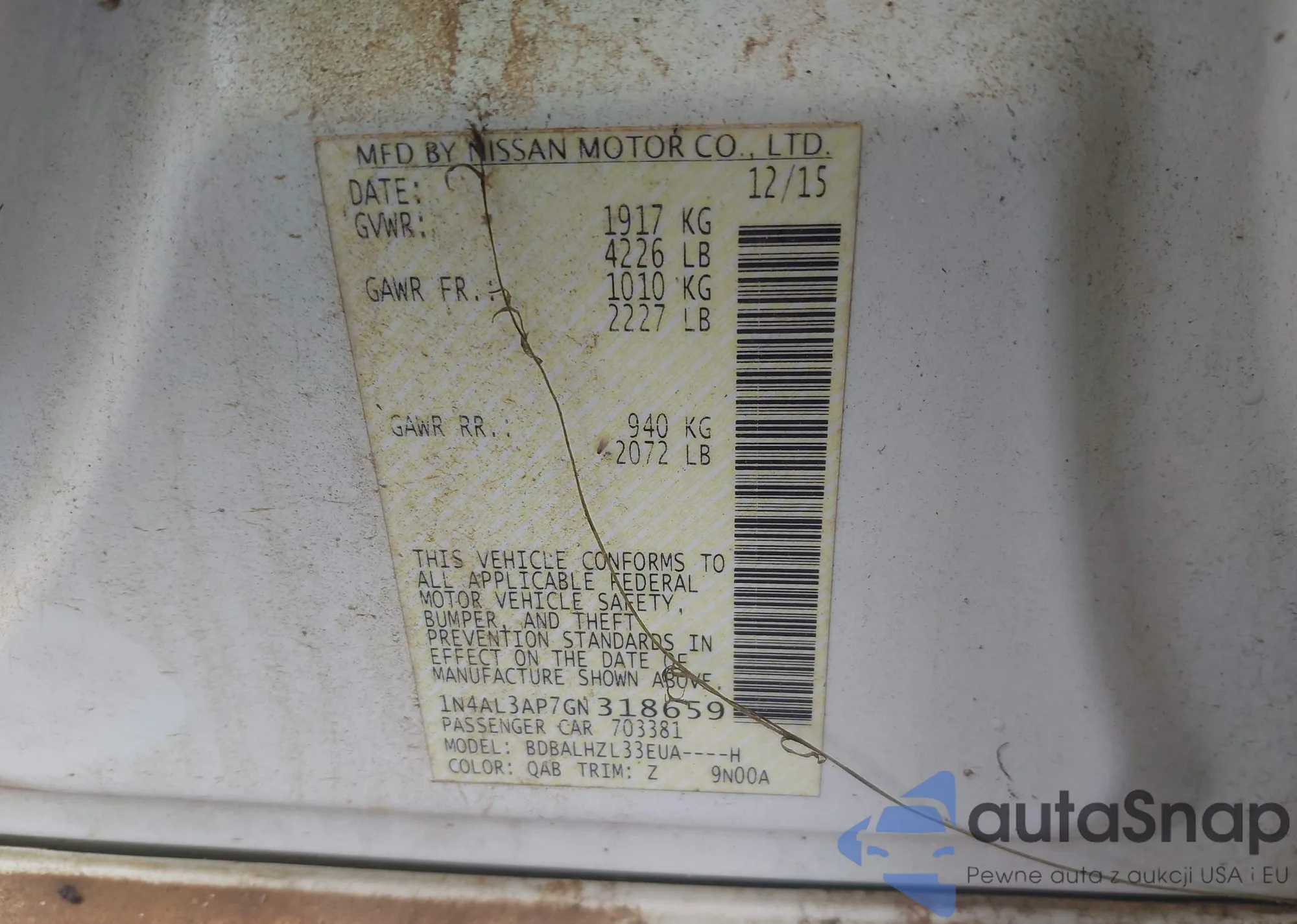 • VIN 1N4AL3AP7GN318659