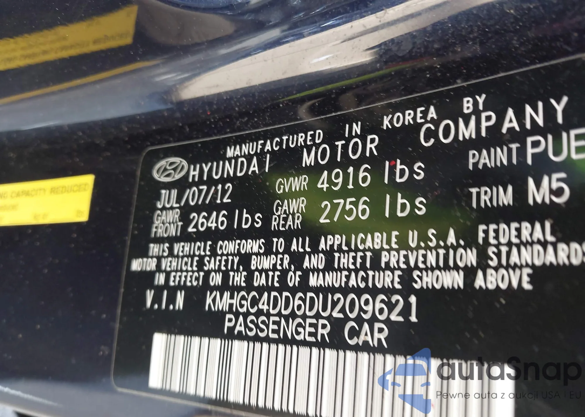 • VIN KMHGC4DD6DU209621
