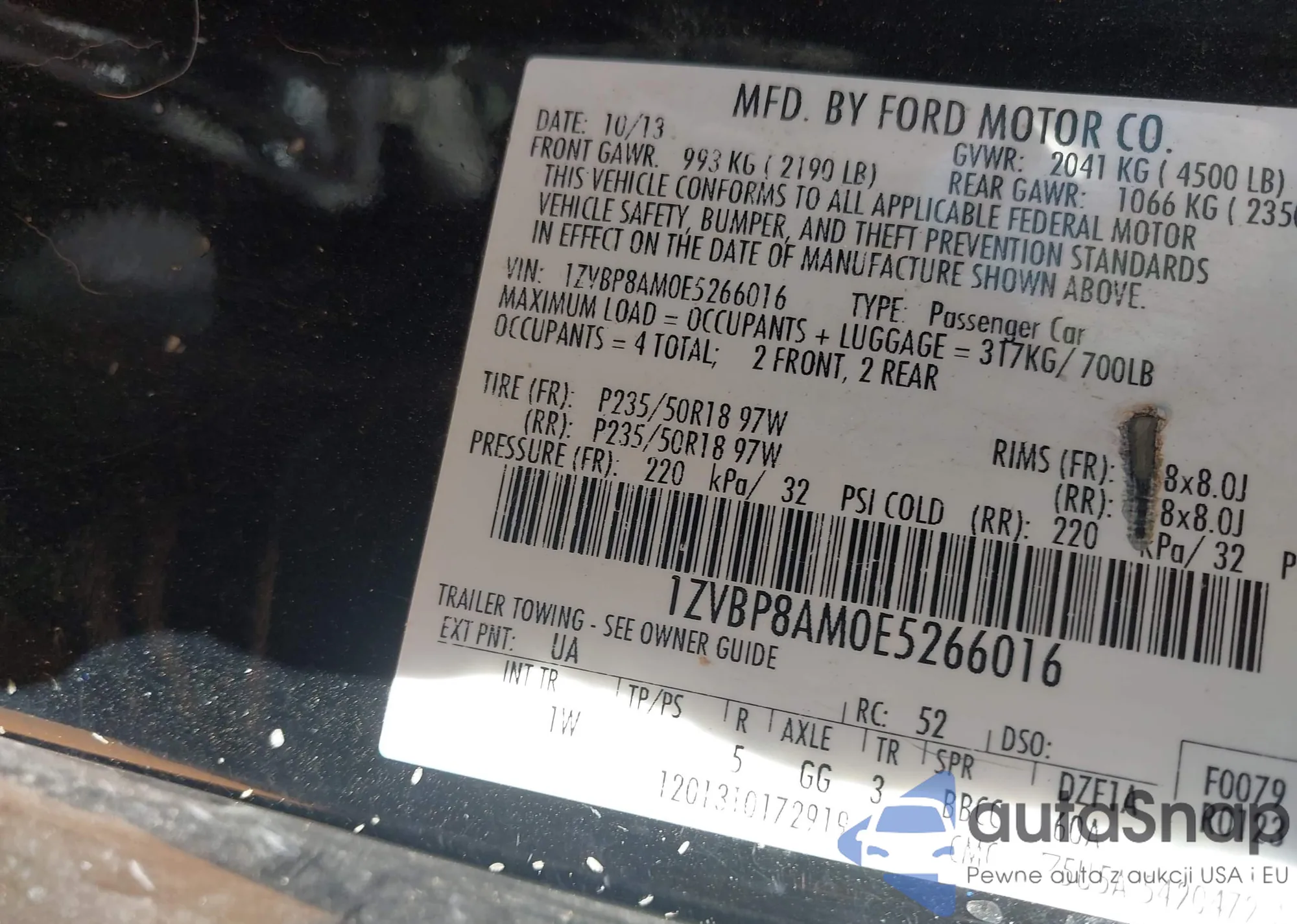 • VIN 1ZVBP8AM0E5266016