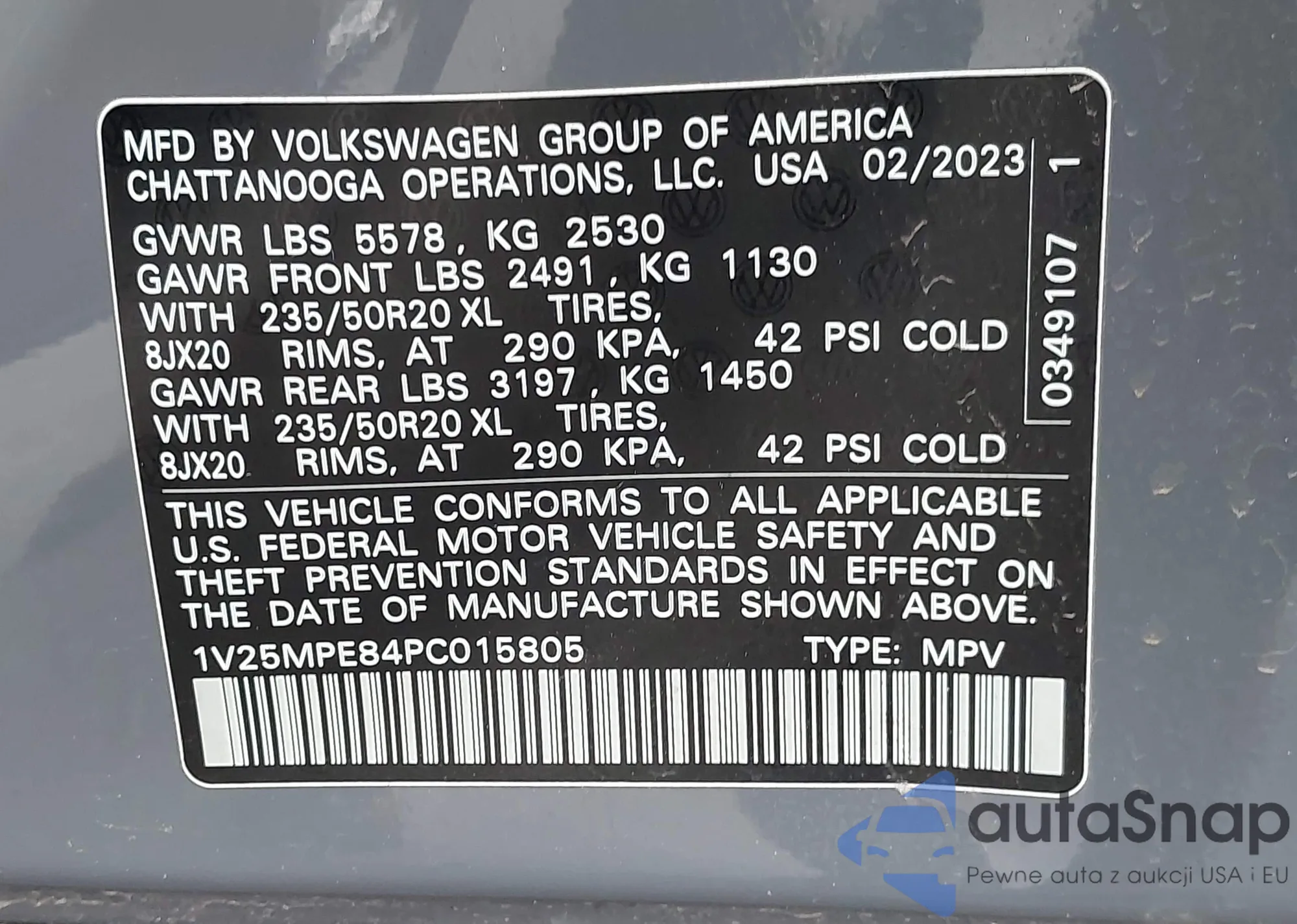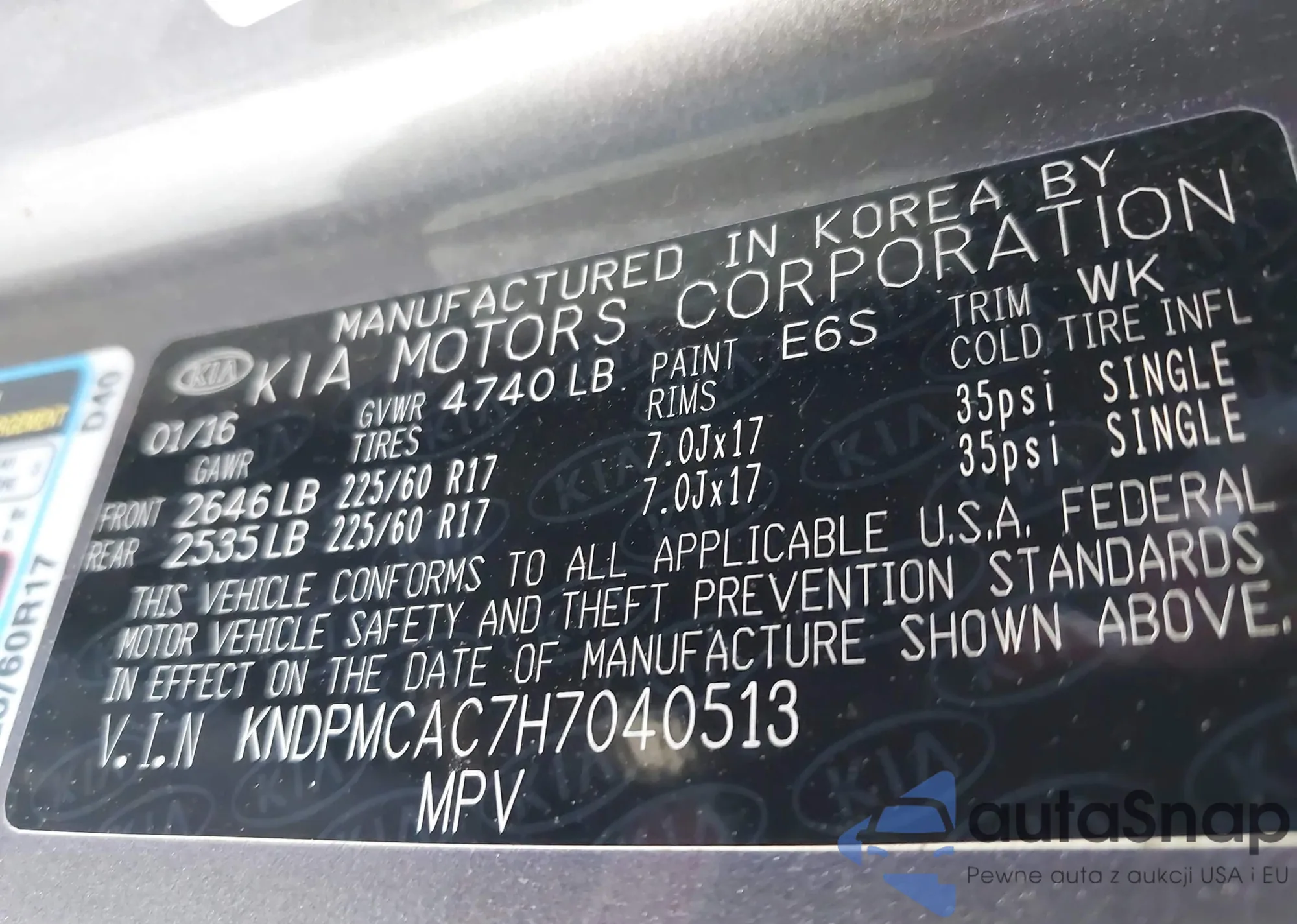 LOT: 42912237 VIN: KNDMC5C11J6365716