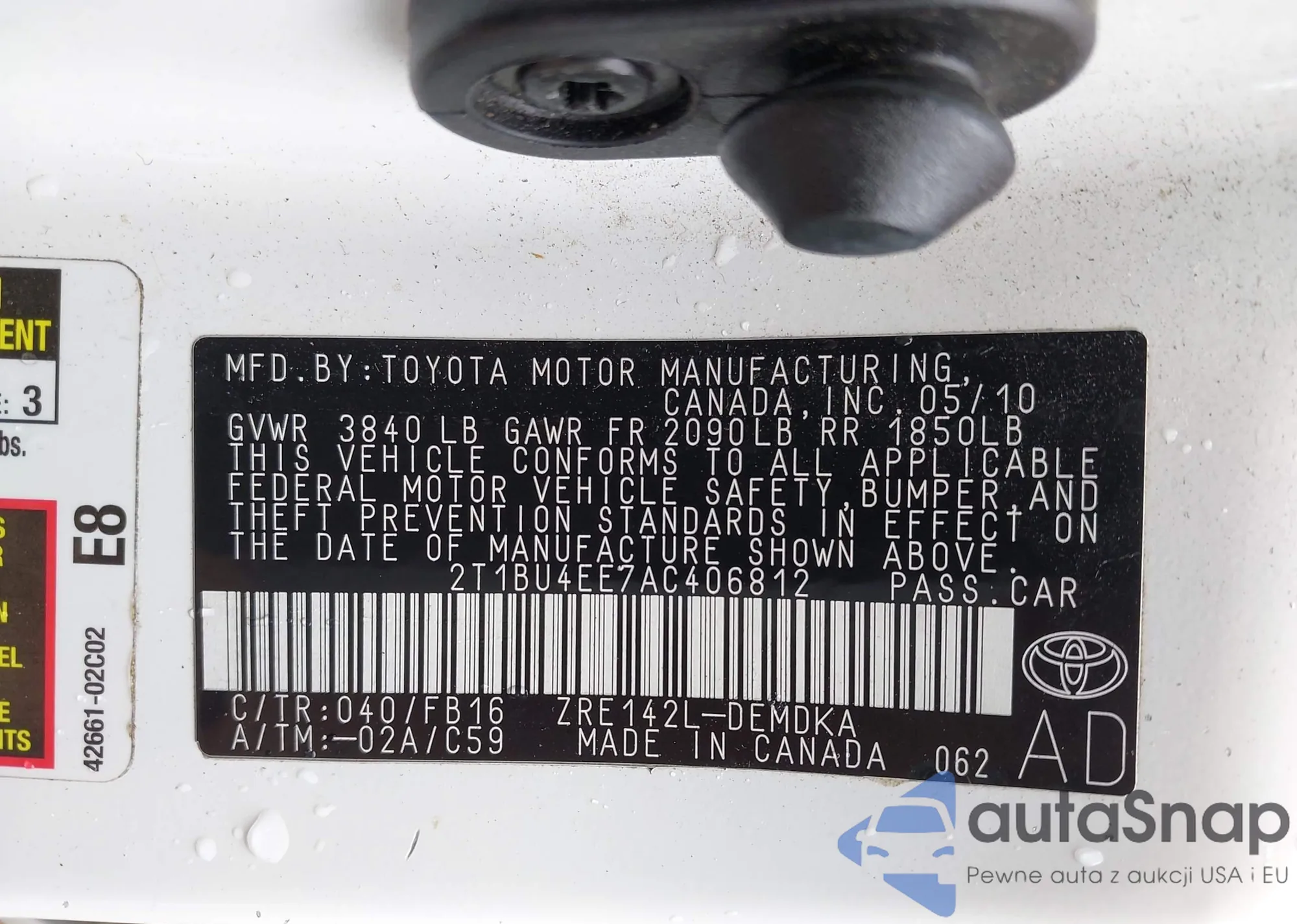 • VIN 2T1BU4EE7AC406812