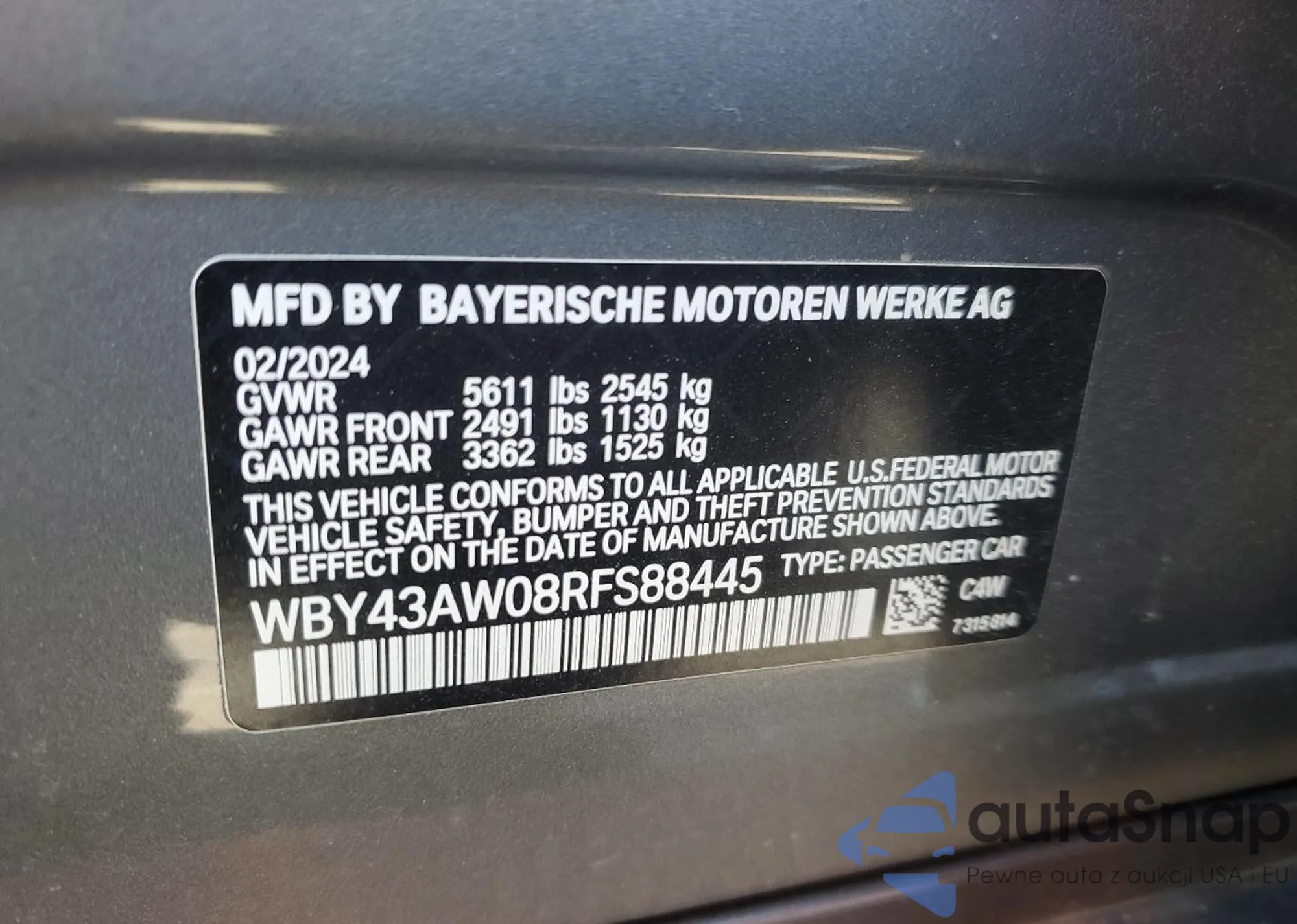 LOT: 42085275 VIN: WBY43AW08RFS88445