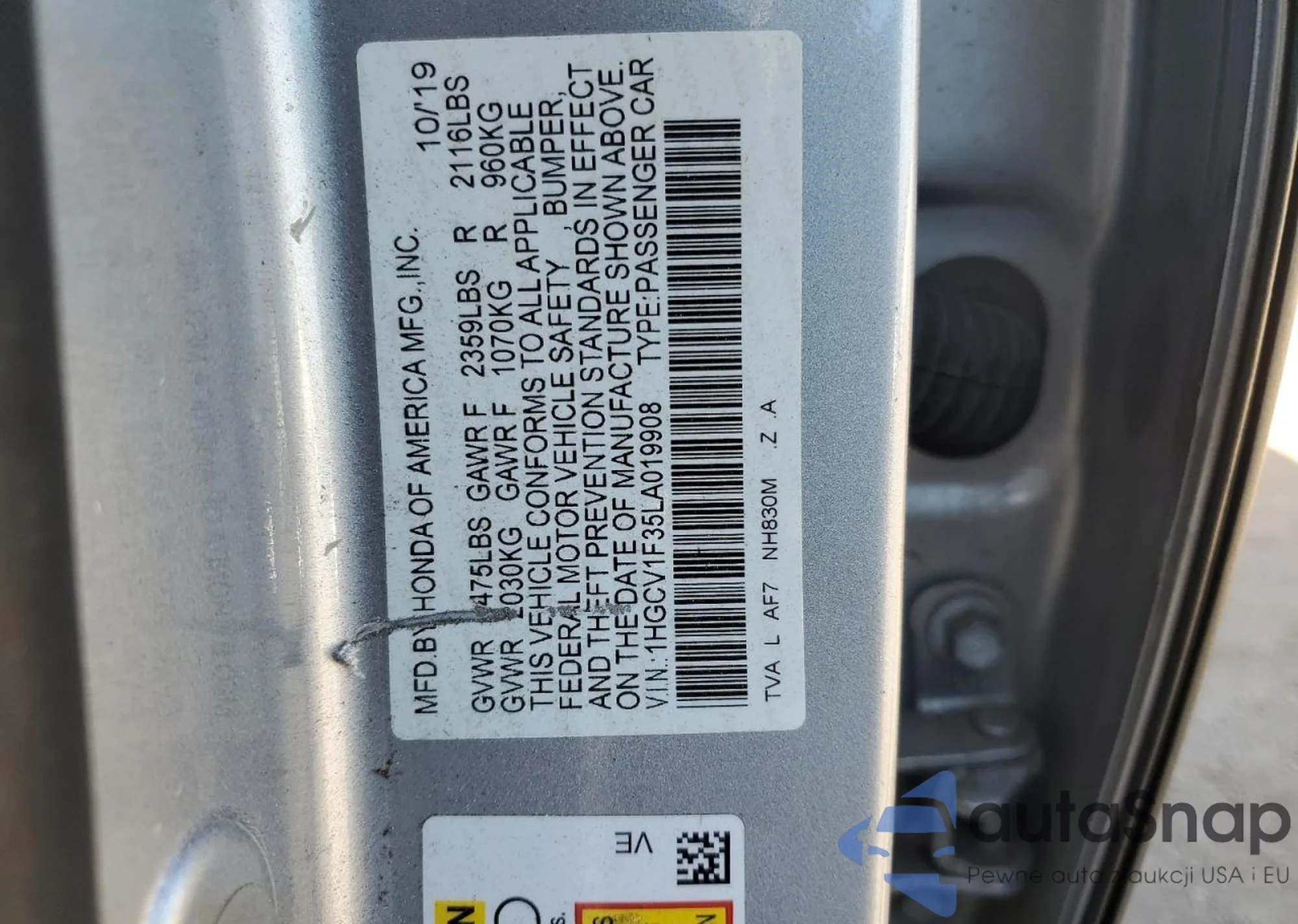 • VIN 1HGCV1F35LA019908