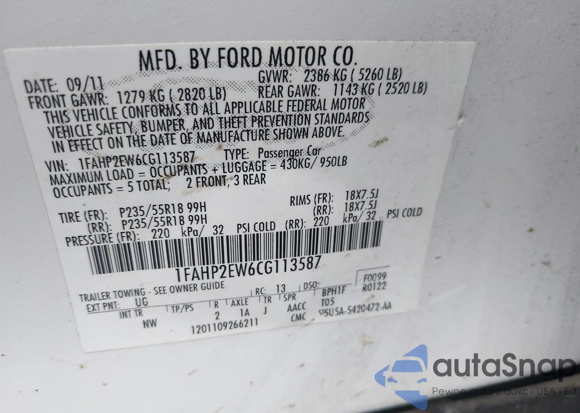 • VIN 1FAHP2EW6CG113587