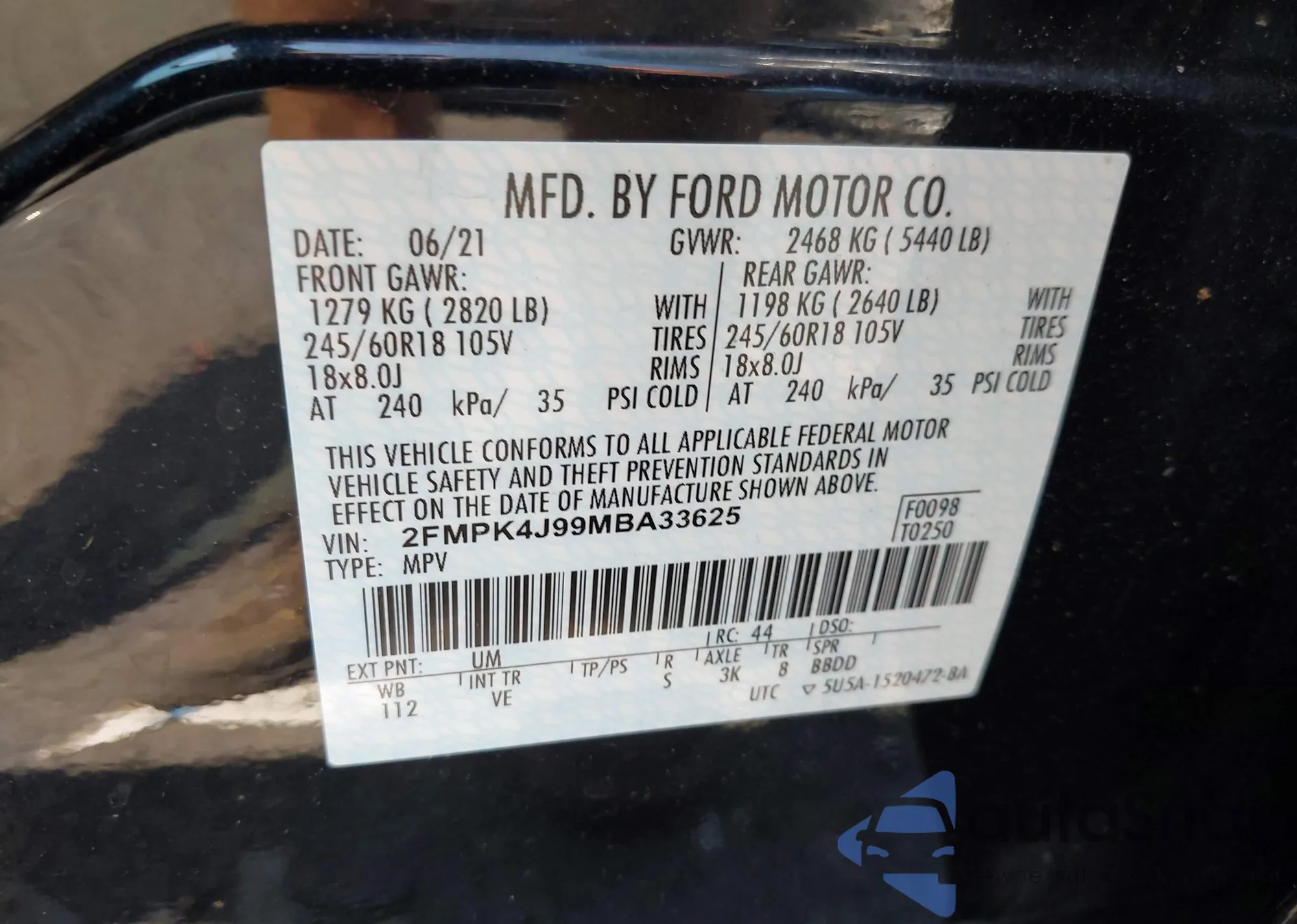 • VIN 1FMCU0C76BKB35951